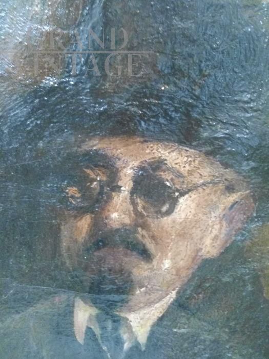 Ritratto di Pirandello di Antonio Bonino, dipinto olio su tela del 1930, firmato, in buone condizioni con tracce di invecchiamento e usura.