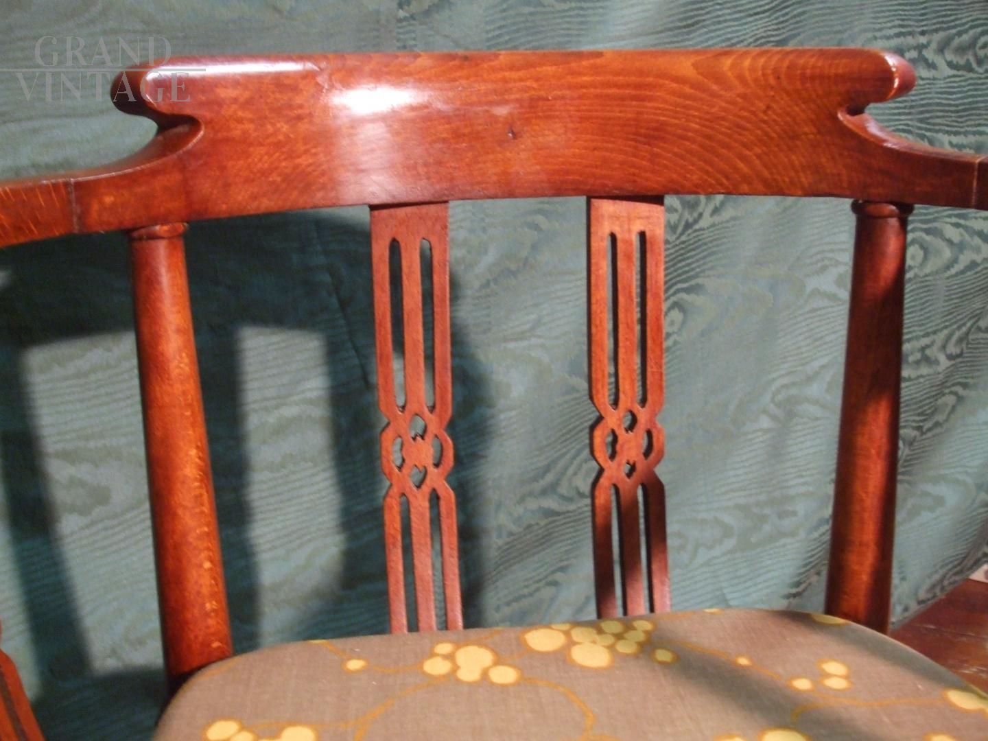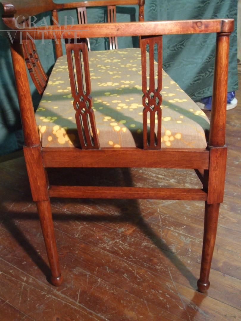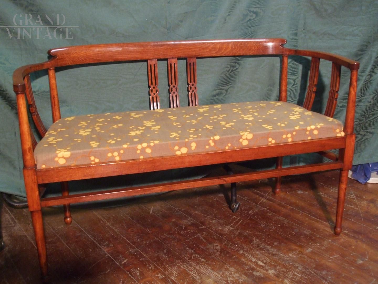 Salotto vintage anni '20 composto da divano e due poltroncine in legno di faggio, ritappezzato con stoffa italiana negli anni '50.