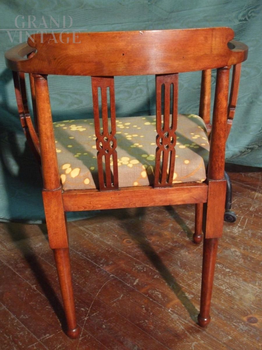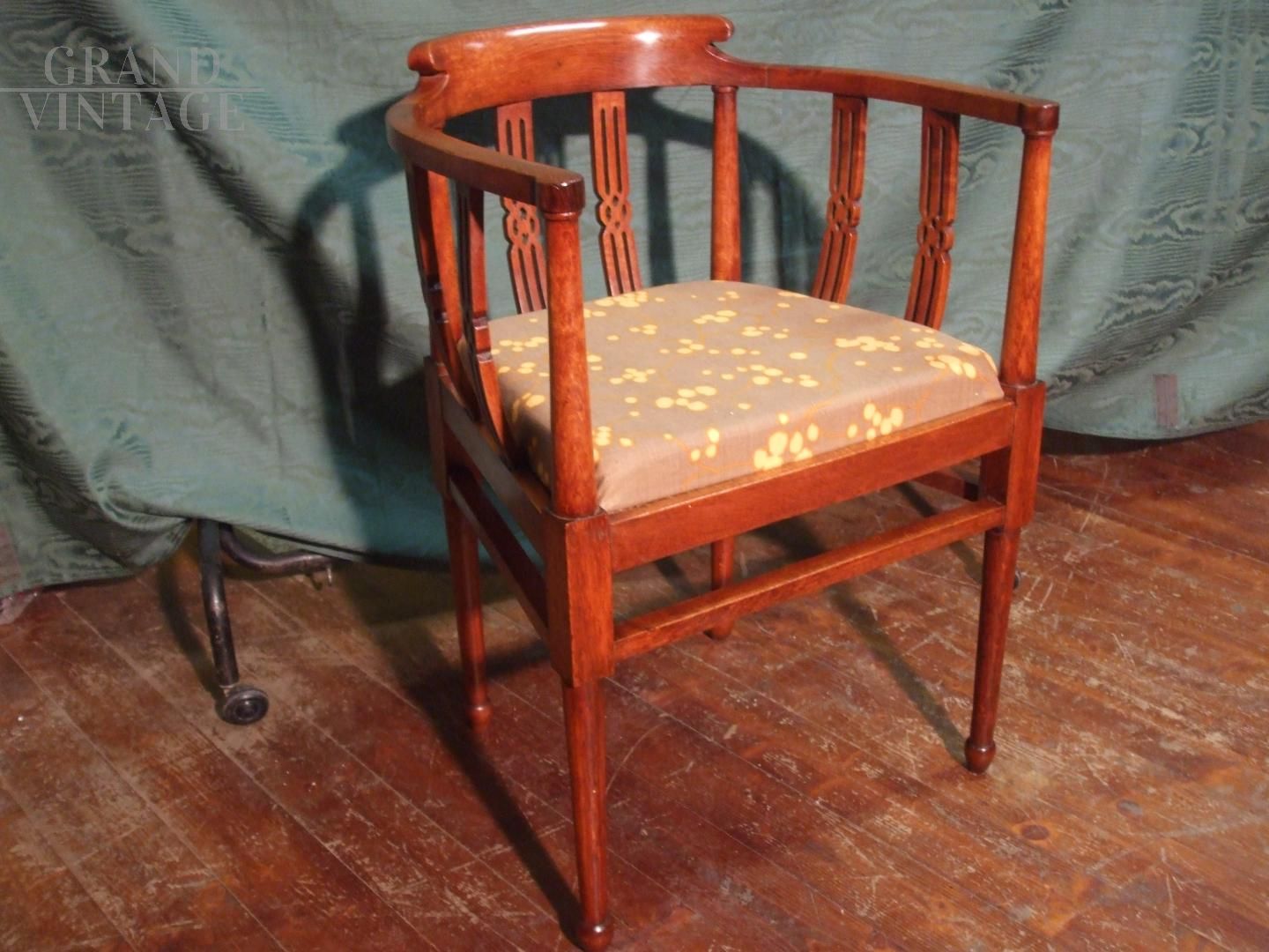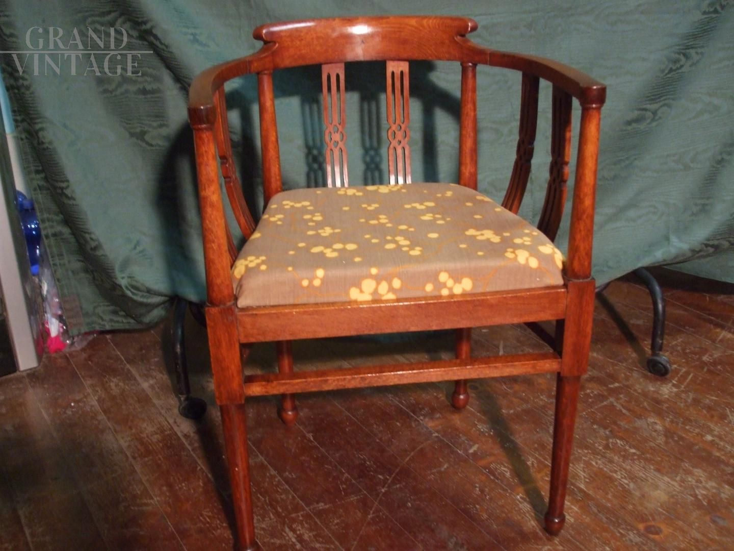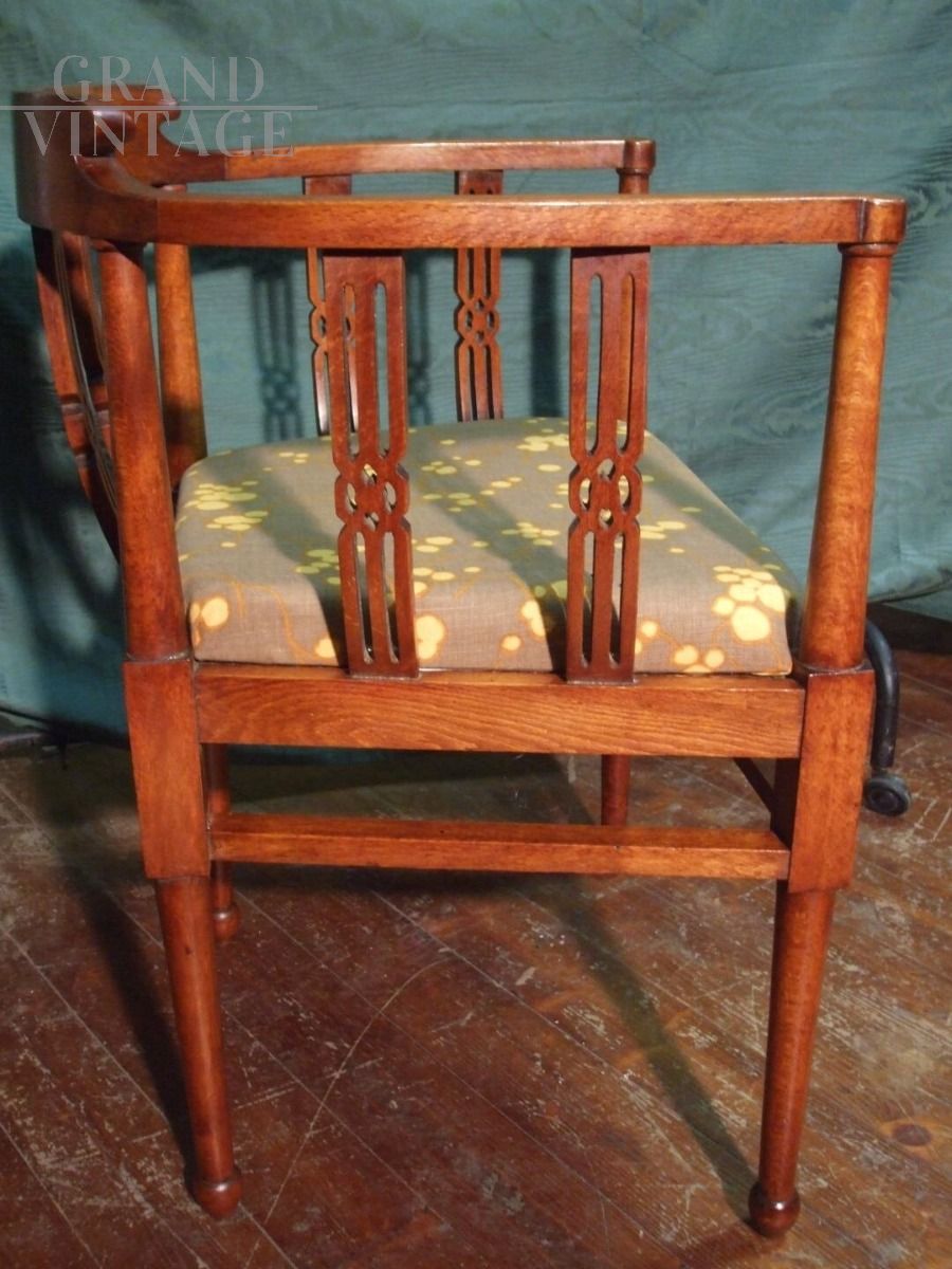 Salotto vintage anni '20 composto da divano e due poltroncine in legno di faggio, ritappezzato con stoffa italiana negli anni '50.