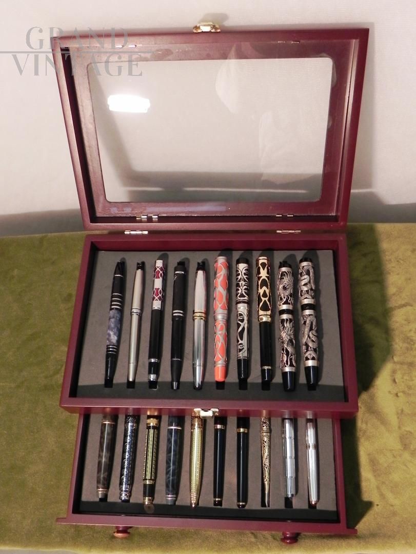Scatola in legno con penne da collezione anni '90