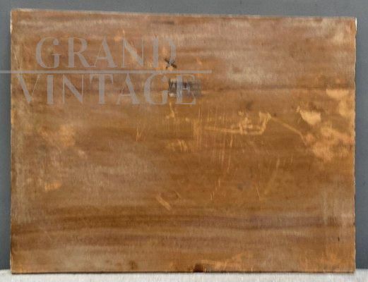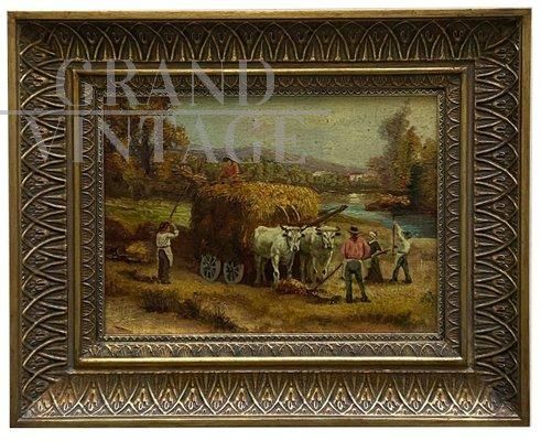 Scena campestre con raccolta del fieno, scuola Posillipo, olio su tavola