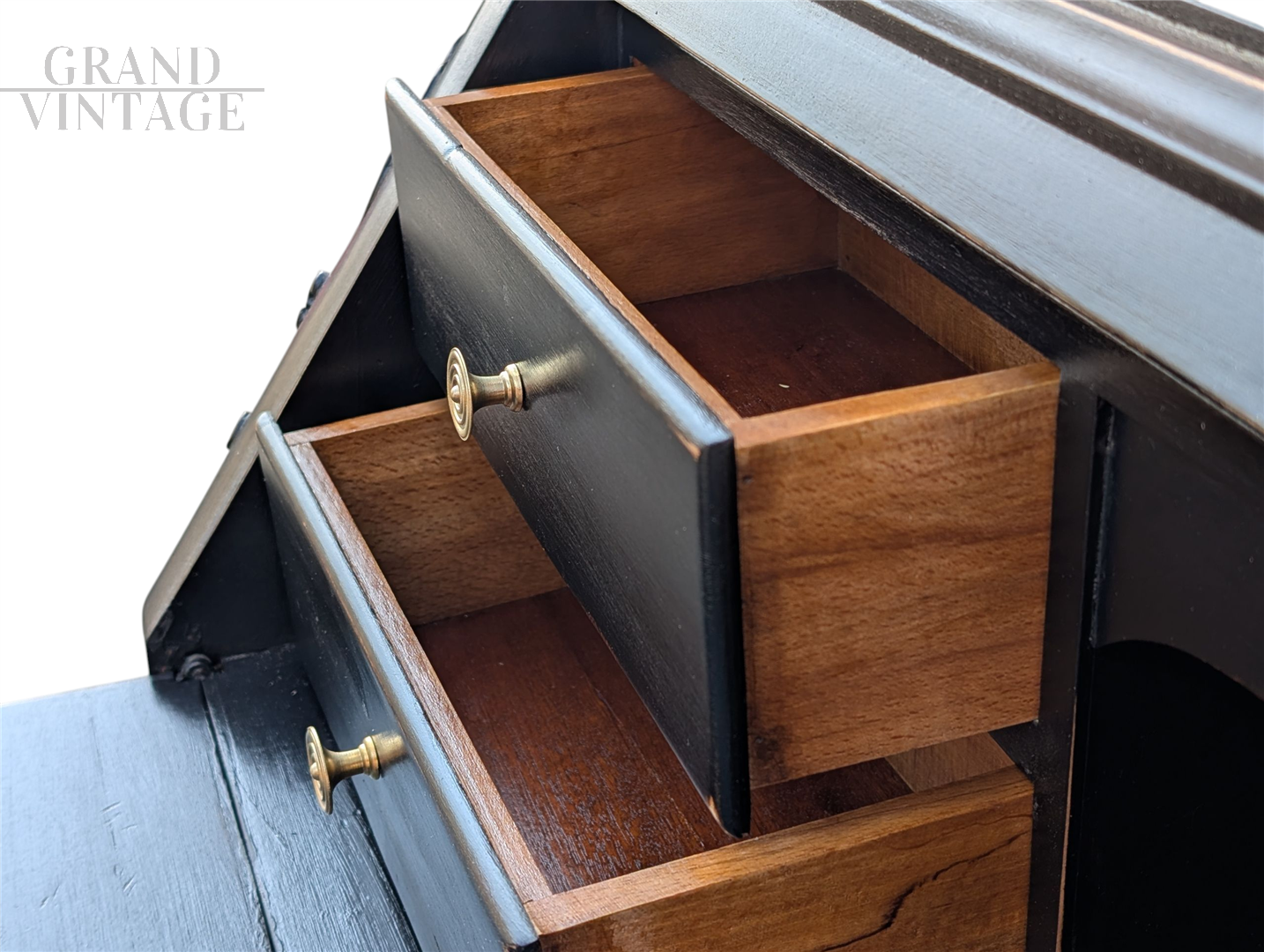 Scrittoio a ribalta in stile barocco francese in noce laccato nero