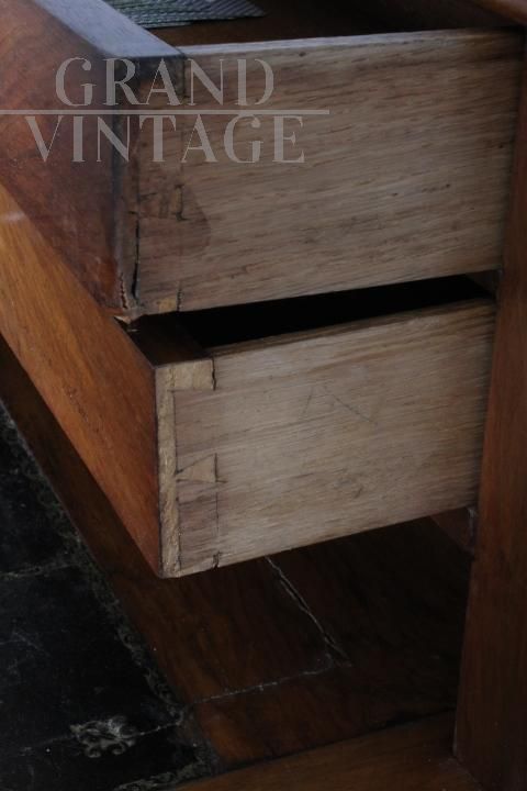 Console antica dell'800 con cassetti e piano in marmo bardiglio