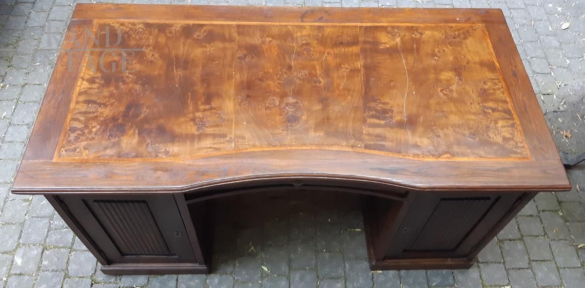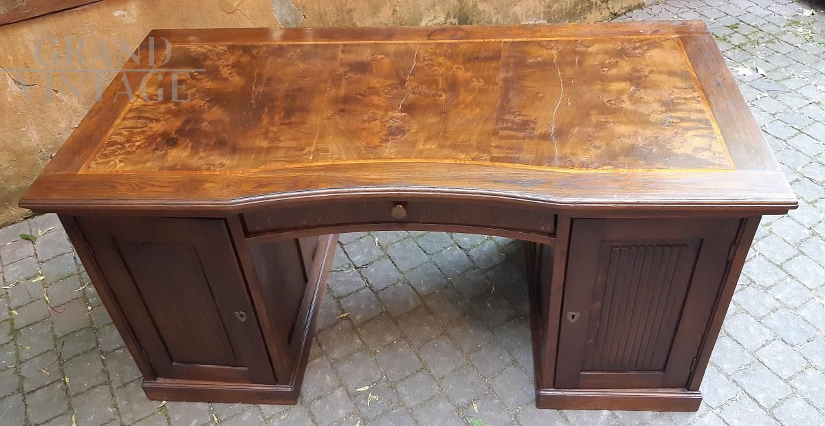 Scrivania antica lombarda con piano in radica