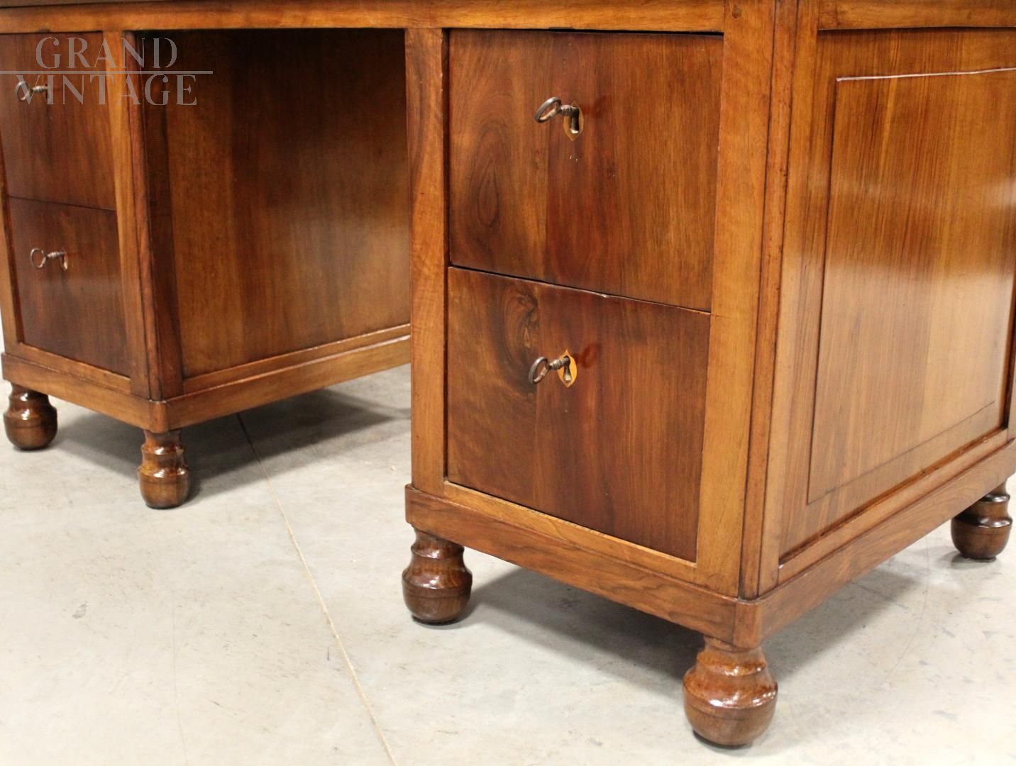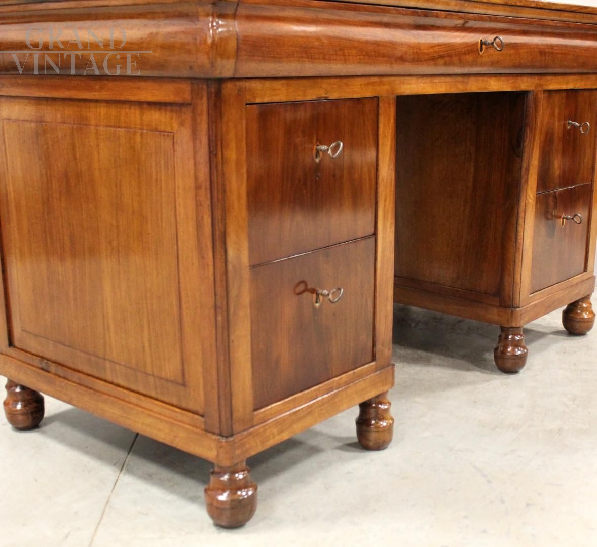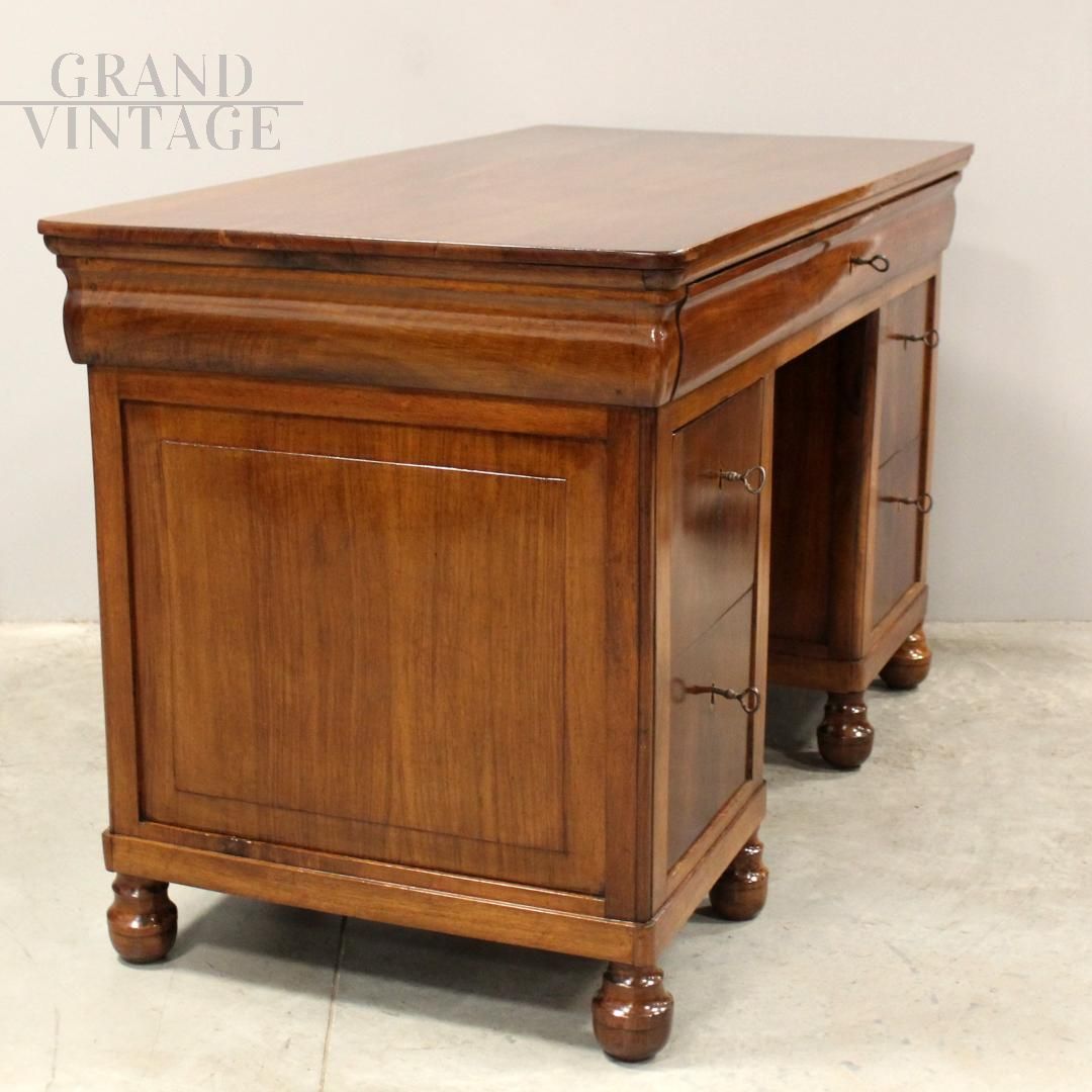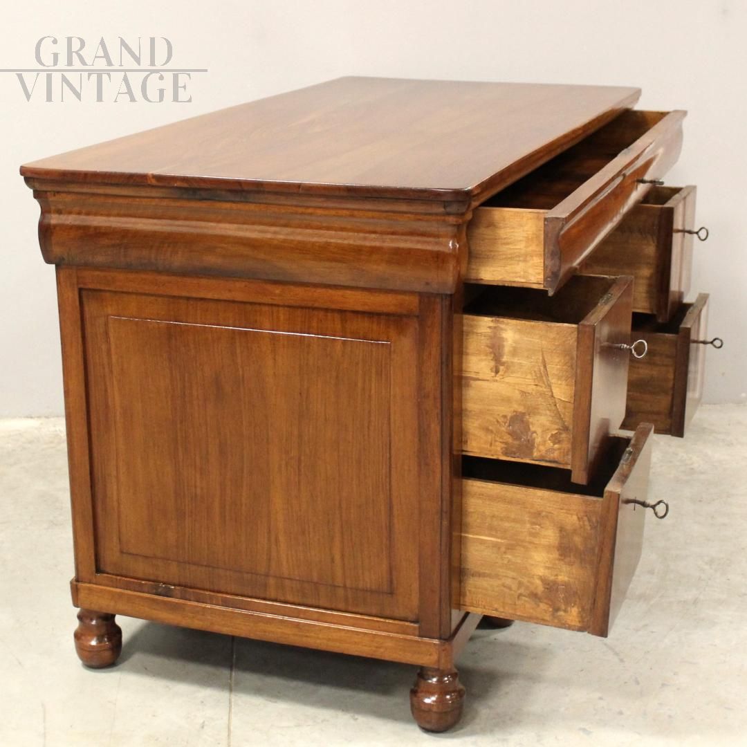 Scrivania antica Luigi Filippo in noce con cassetti, Italia '800