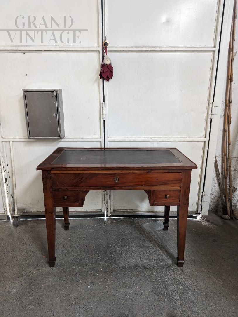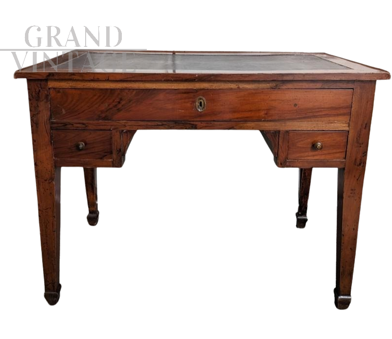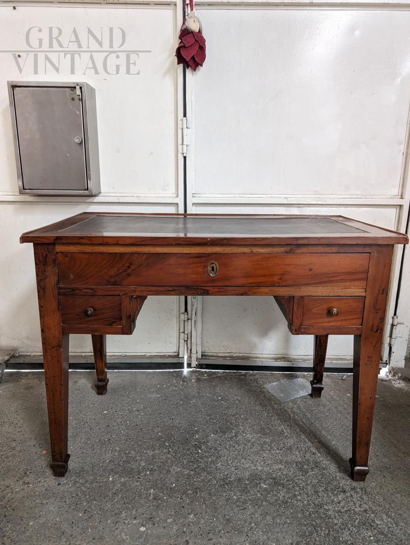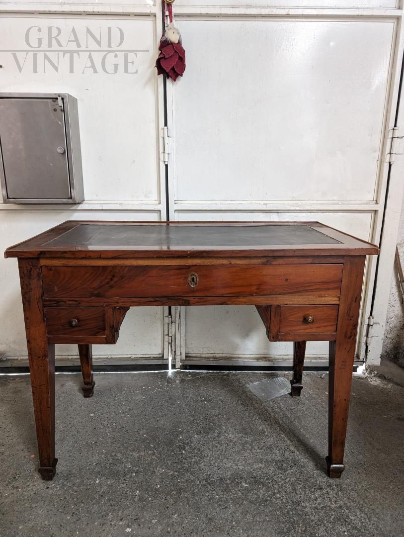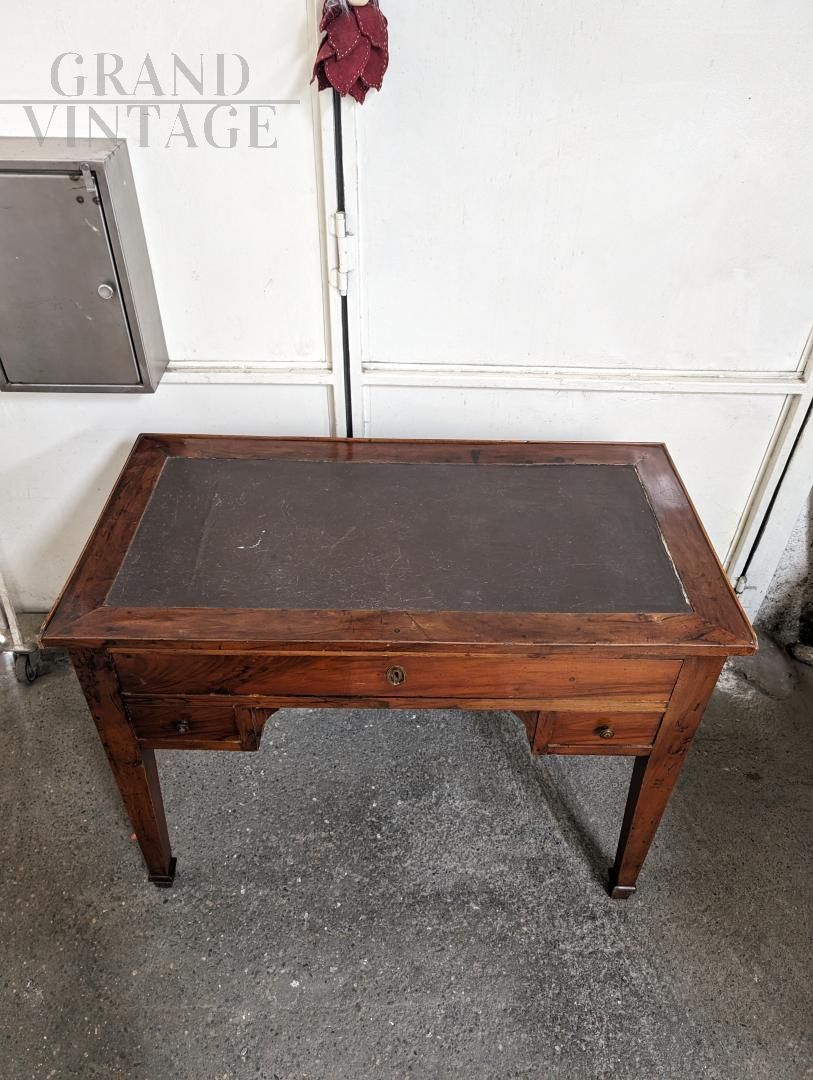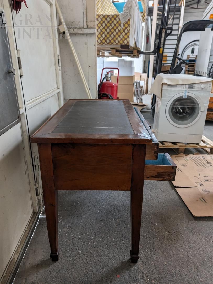 Scrivania antica vittoriana con piano in pelle, XIX secolo