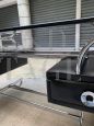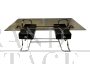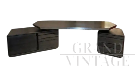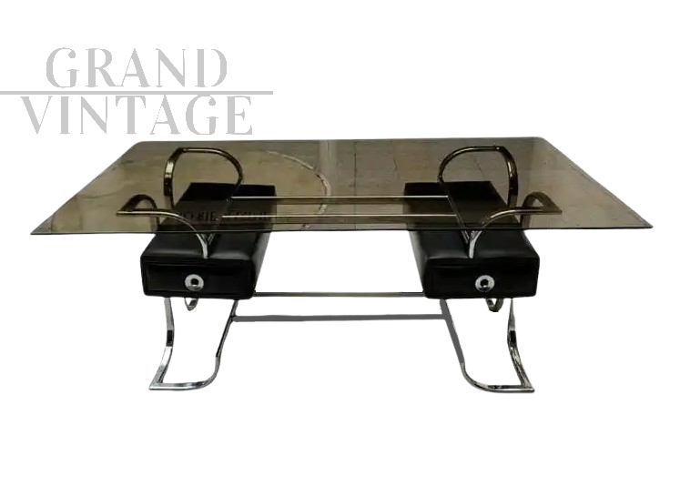 Scrivania attr. Michel Ducaroy in acciaio e vetro fumé