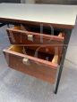 Combinando eleganza e funzionalità, questo pezzo iconico riflette l'innovazione e la competenza di un designer visionario. La sua struttura elegante, realizzata con materiali pregiati come il palissandro e la melamina, la rende un must per gli amanti del design di metà secolo. Grazie alle sue dimensioni compatte, si adatta facilmente a un raffinato home office o a uno spazio di lavoro professionale creativo.