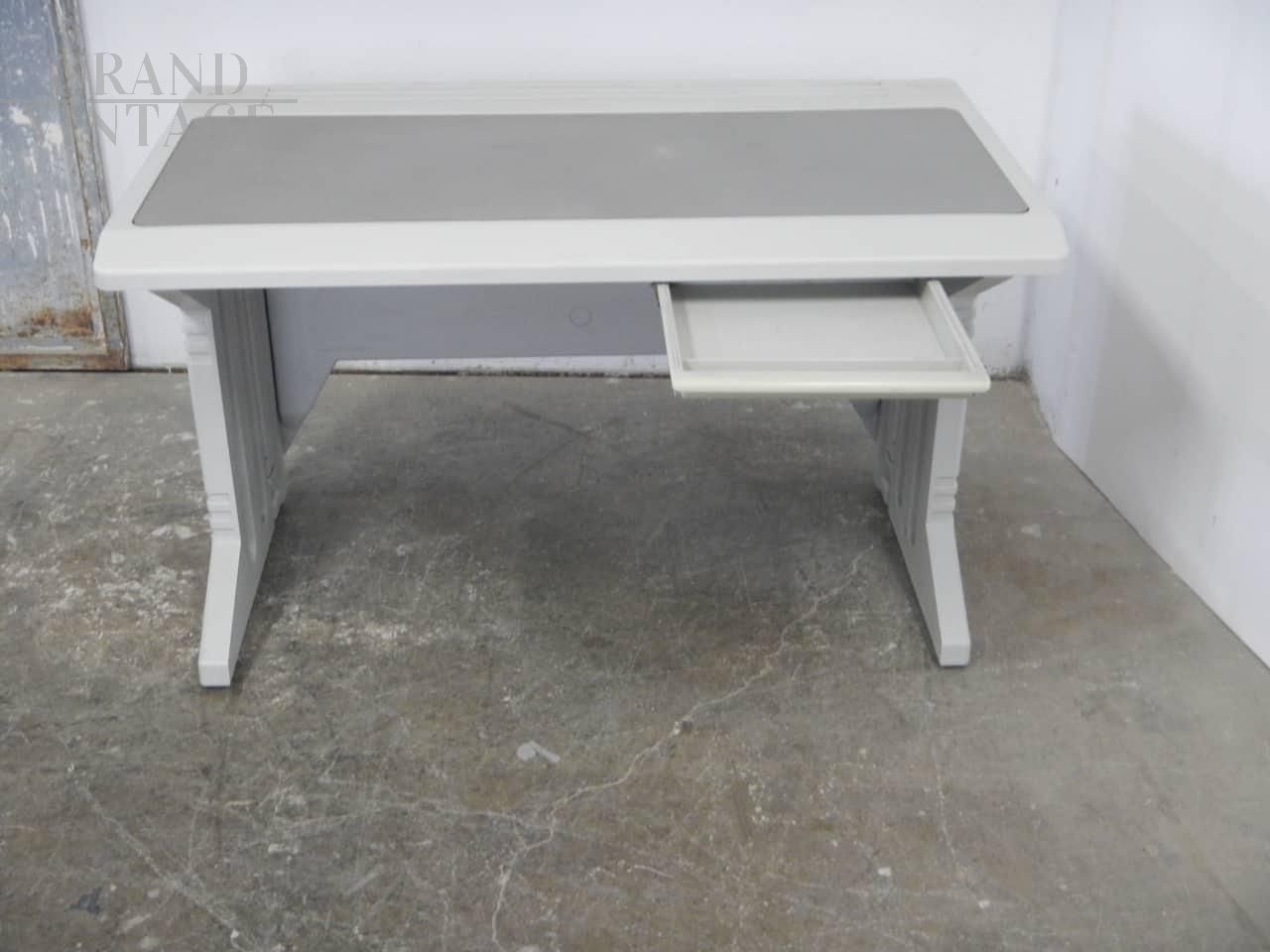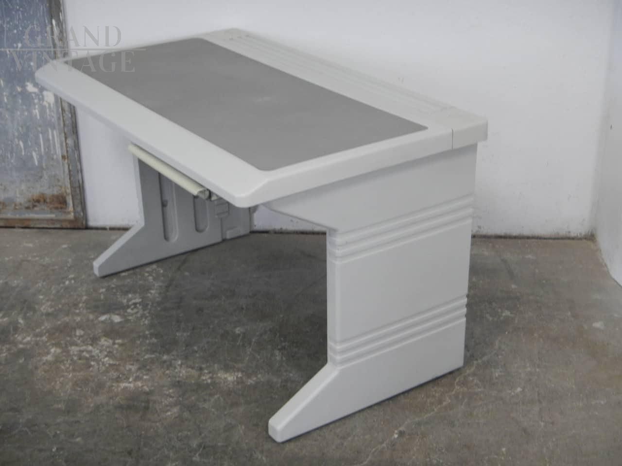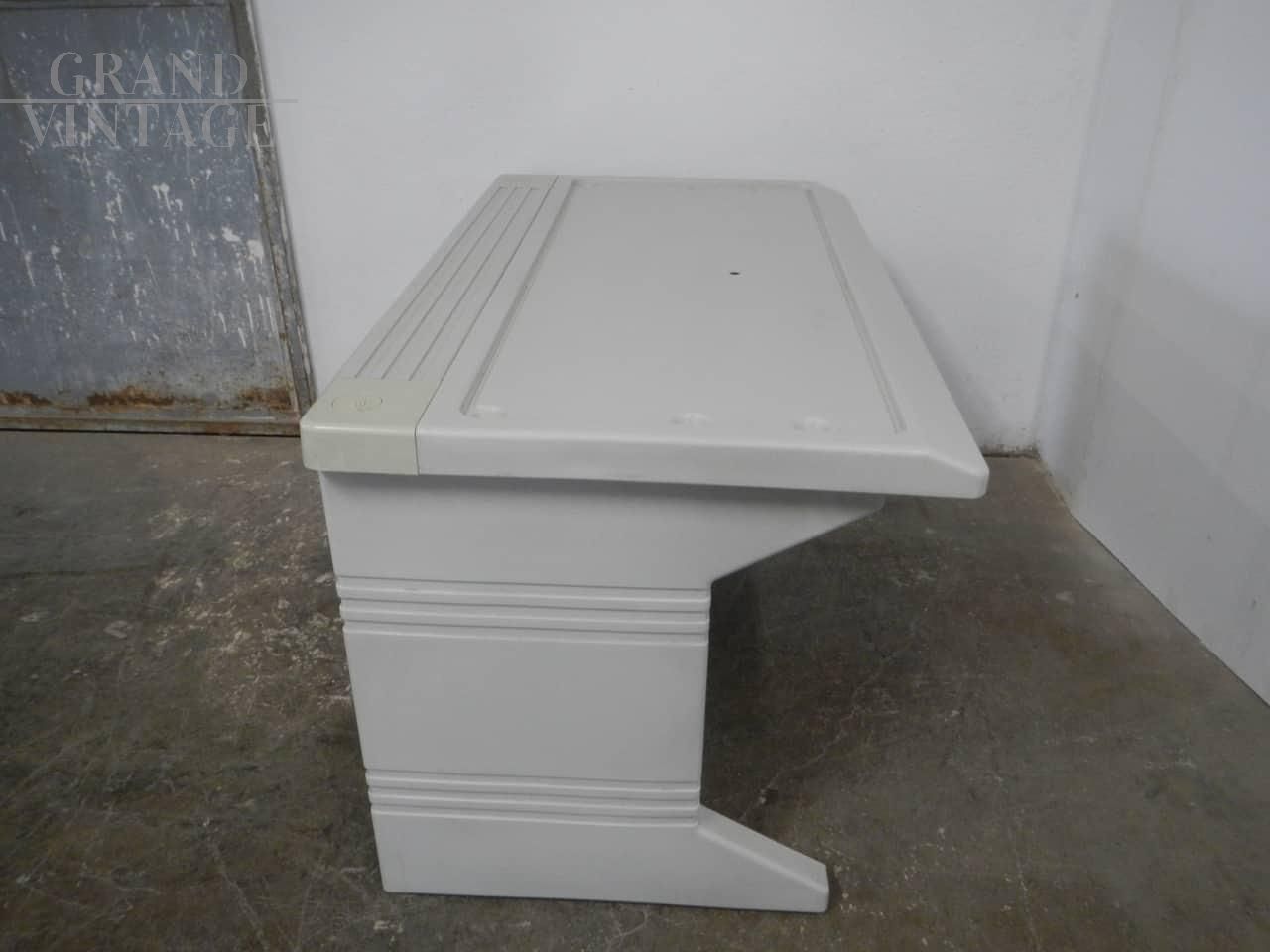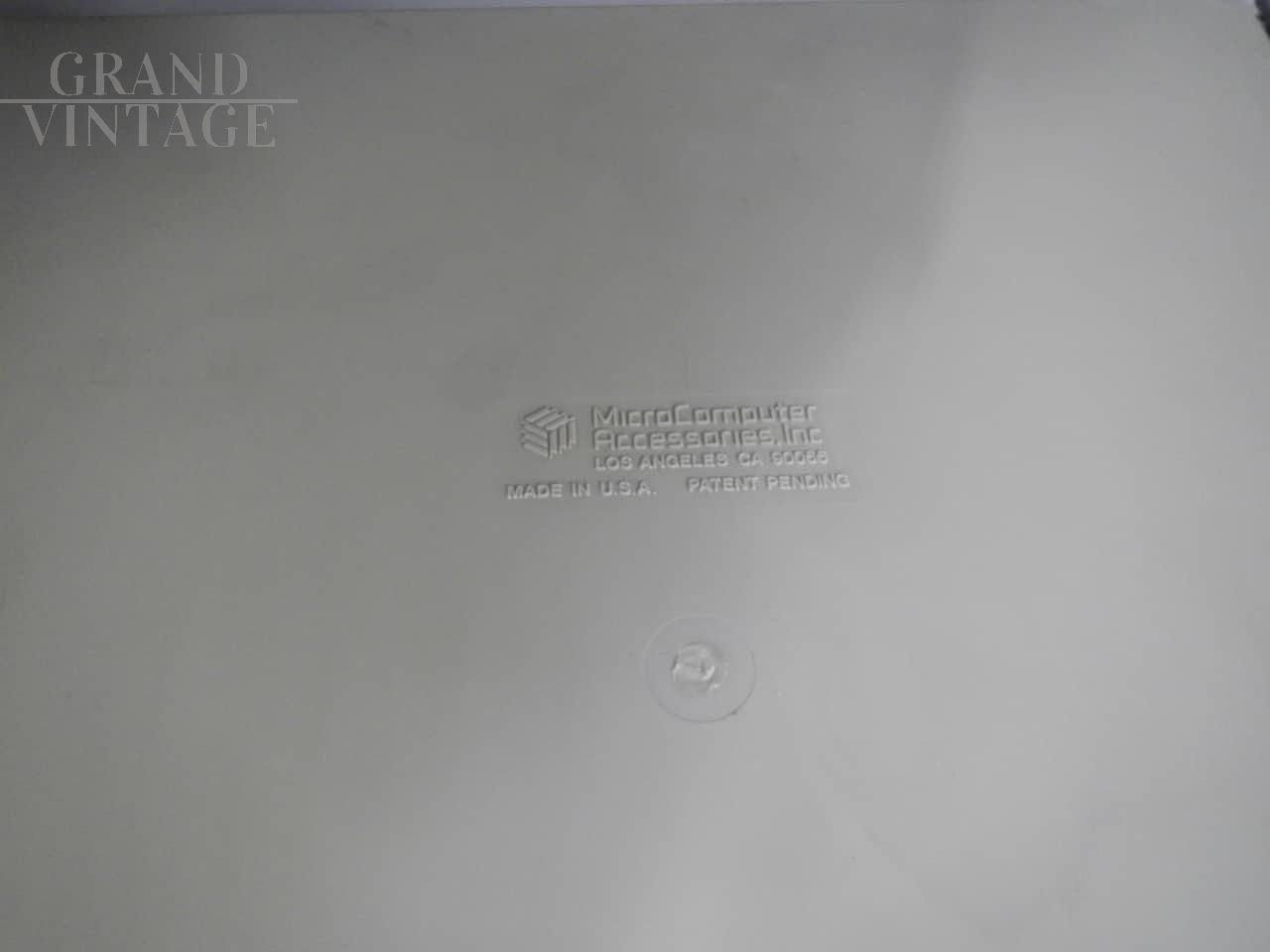 Scrivania vintage americana in plastica prodotta da Microcomputer Accessories, Made in USA - Los Angeles, con un cassetto, un porta cavi e un piano estraibile di 113 x 46 cm. In condizioni discrete, con segni d’uso.