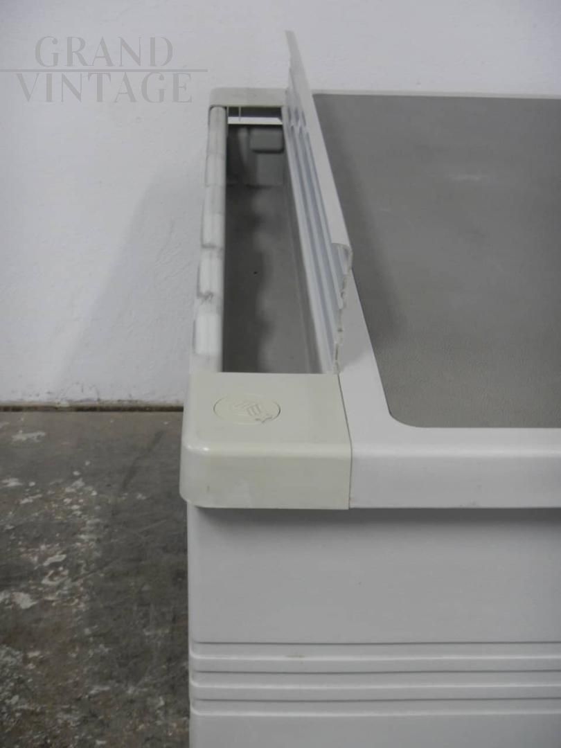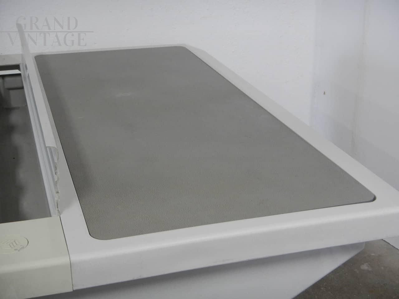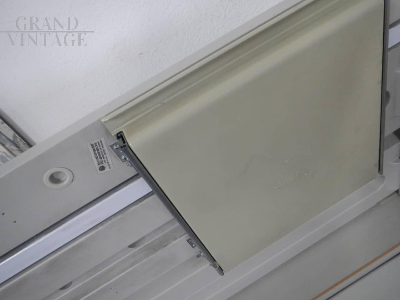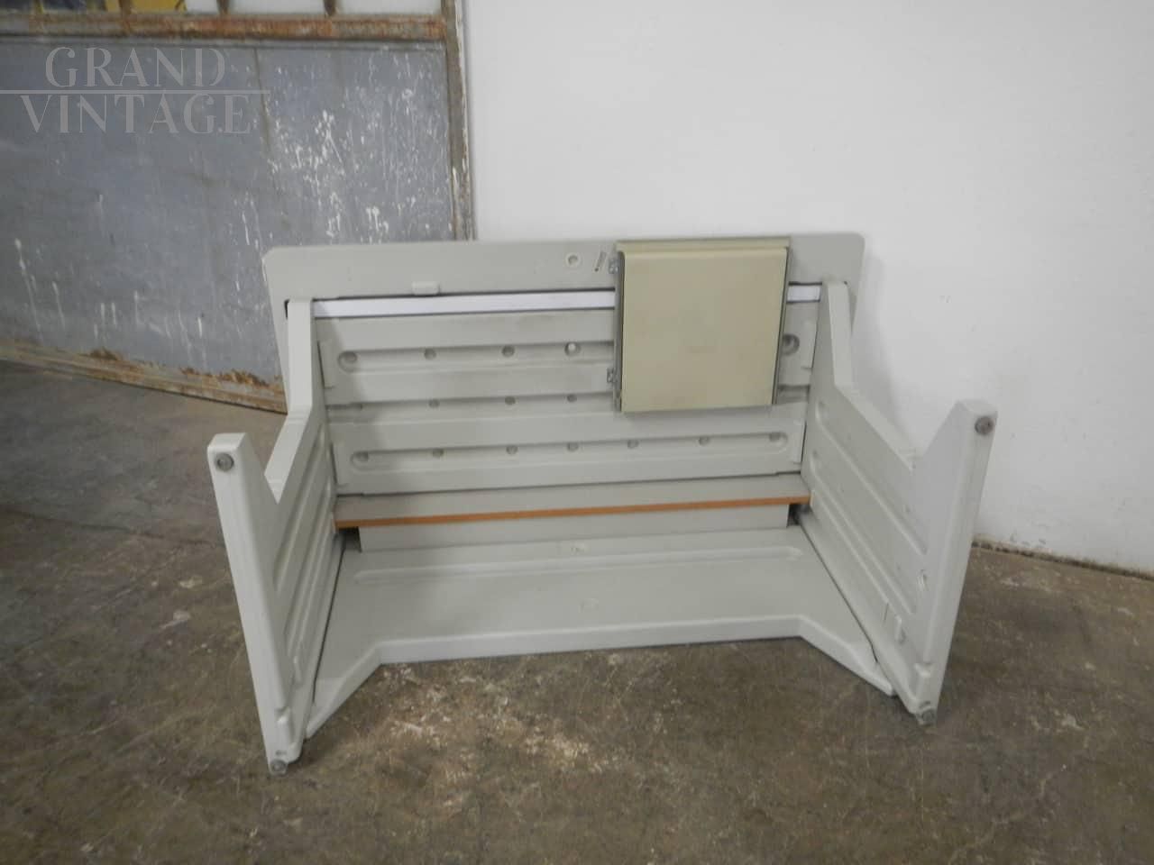 Scrivania vintage americana in plastica prodotta da Microcomputer Accessories, Made in USA - Los Angeles, con un cassetto, un porta cavi e un piano estraibile di 113 x 46 cm. In condizioni discrete, con segni d’uso.
