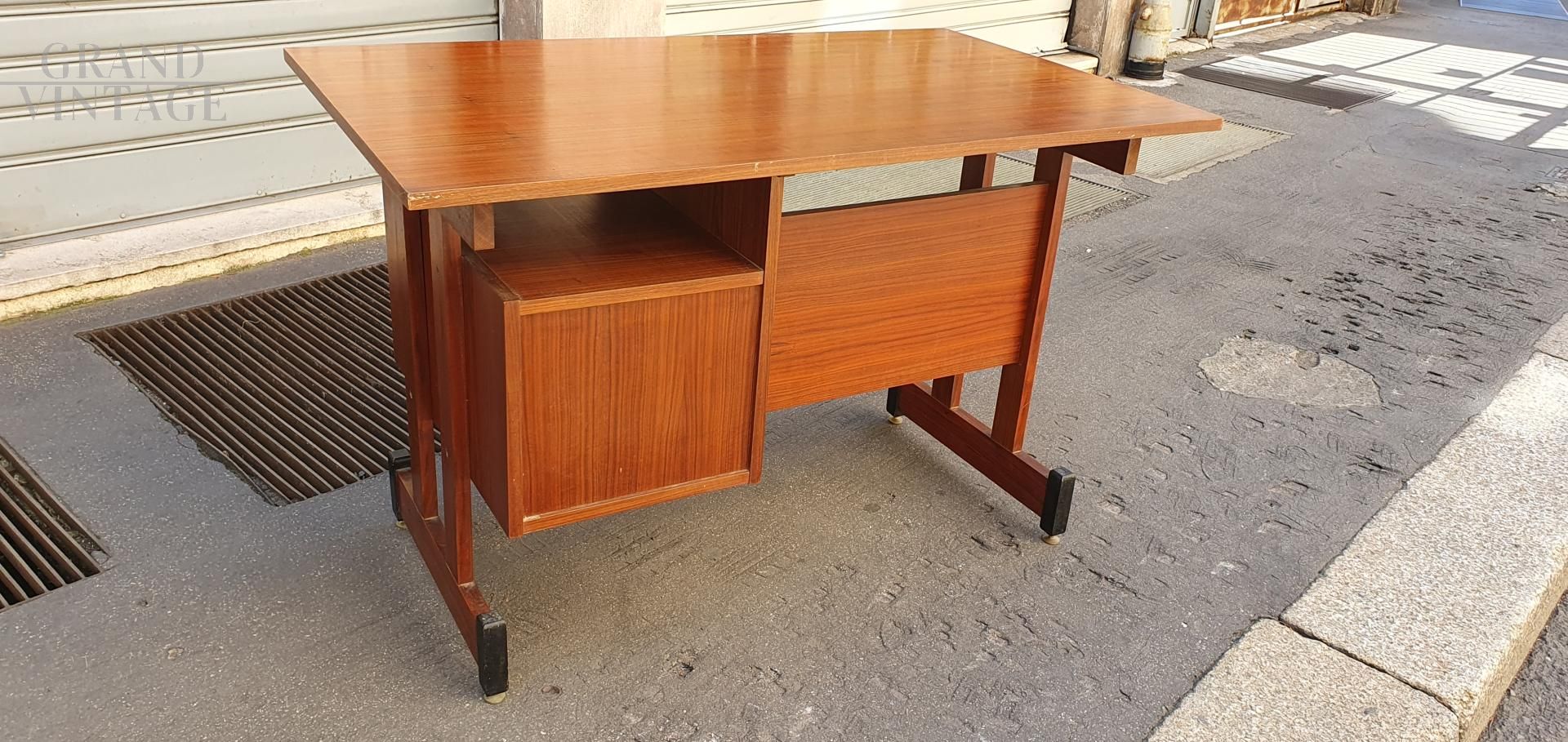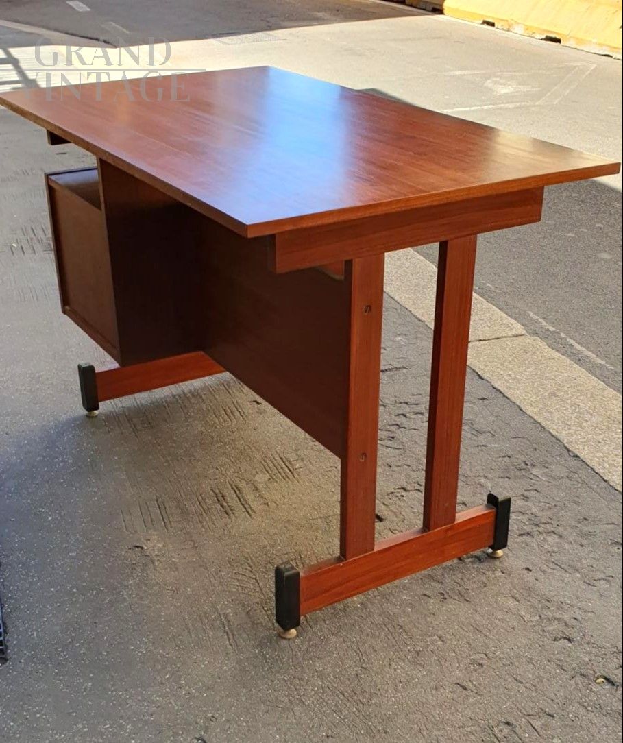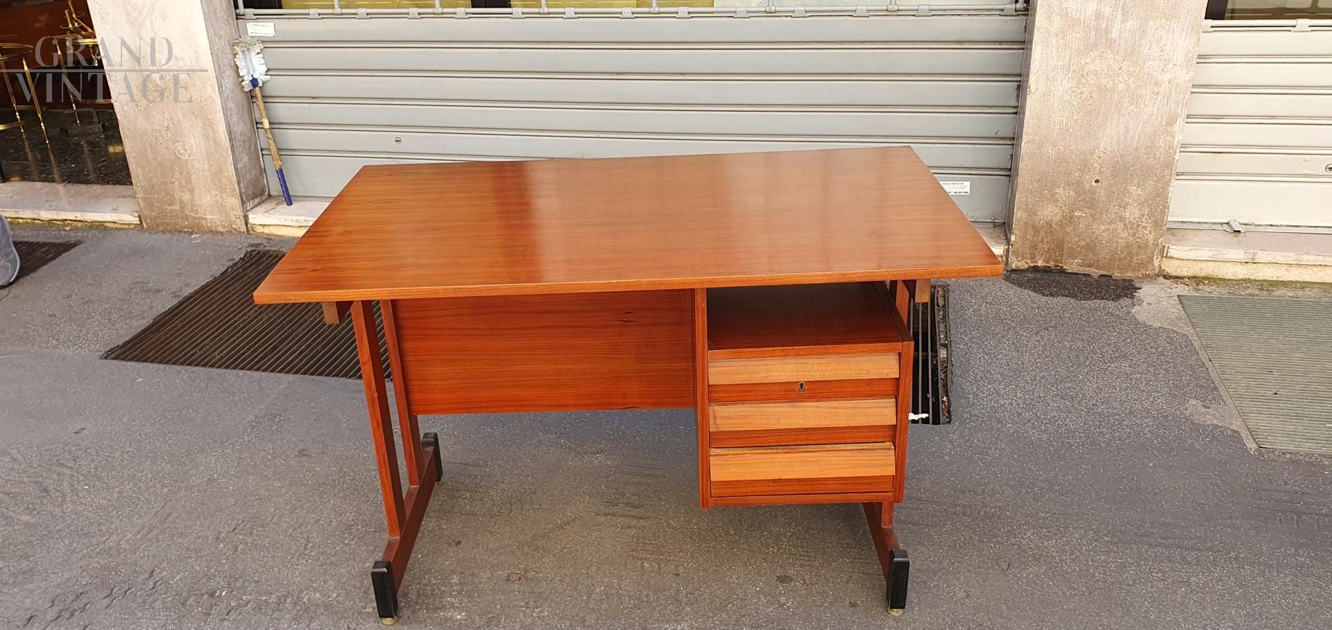 Scrivania vintage italiana in teak con cassettiera, anni '60