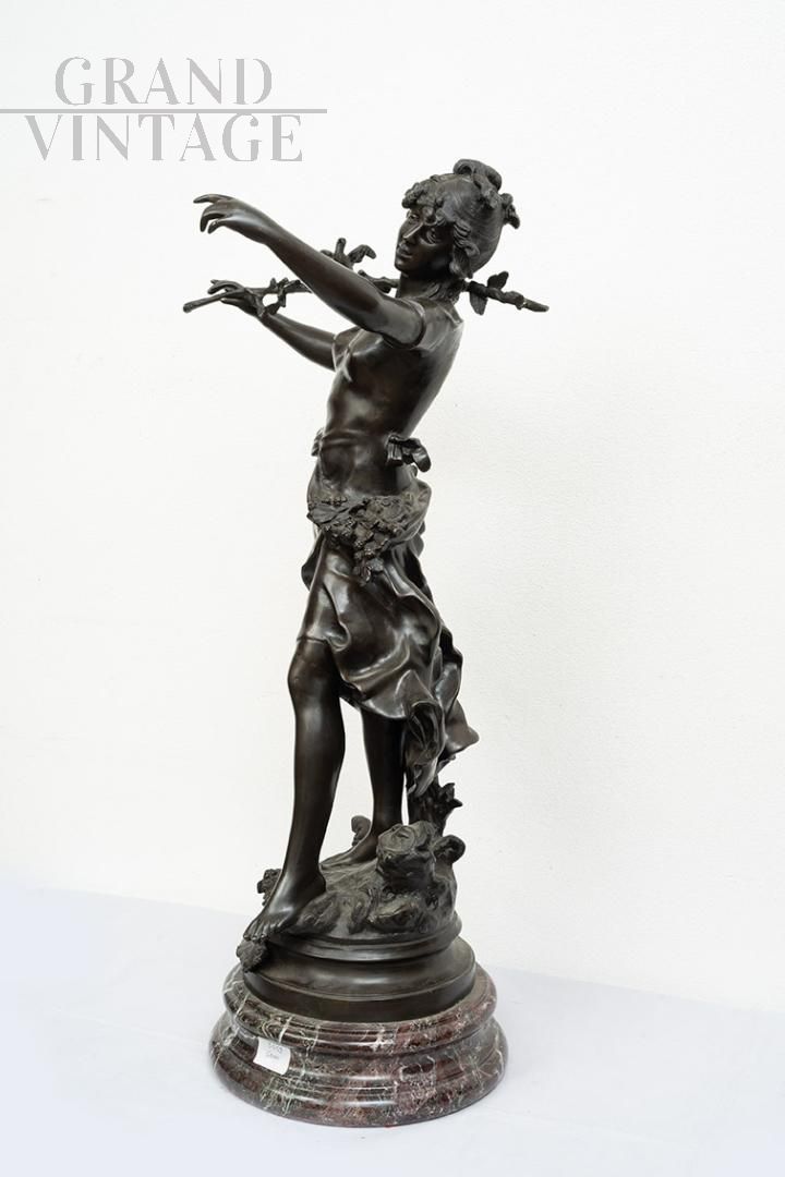 Scultura antica in bronzo patinato raffigurante la Nymphe de Bois