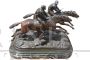 Scultura raffiguranti due cavalli da corsa del 1930 prodotta in antimonio, un semimetallo (unito in una lega con il piombo). Di provenienza Francese.