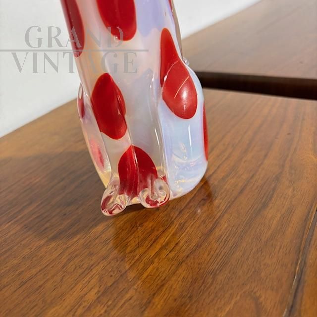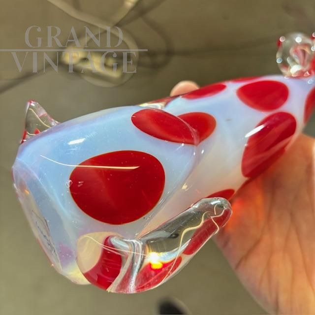 Scultura di cane in vetro di Murano a pois rossi, anni '70