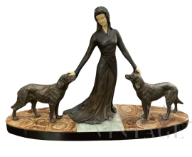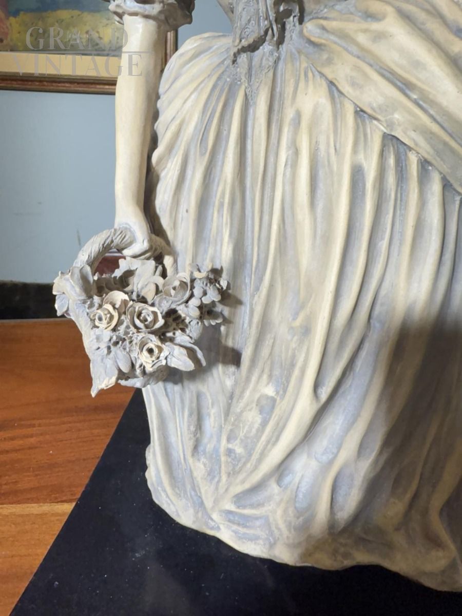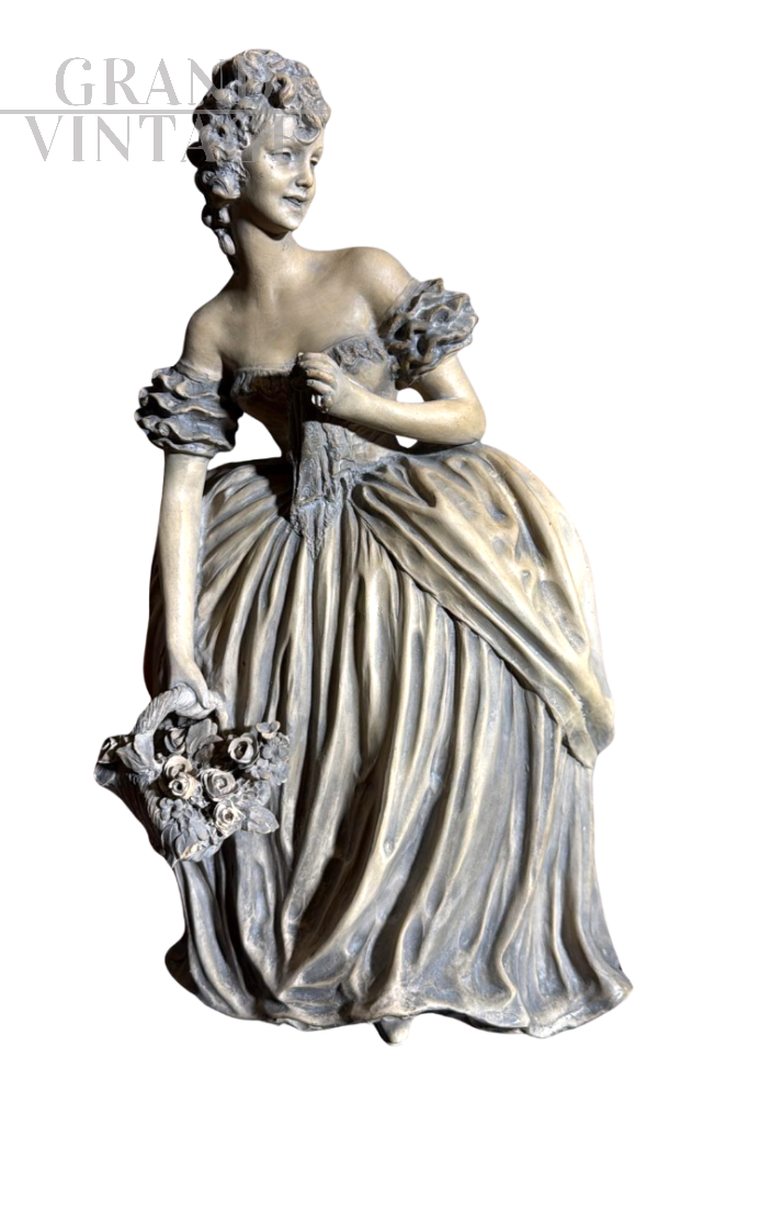 Scultura di dama anni '40 in terracotta patinata firmata Tomuti