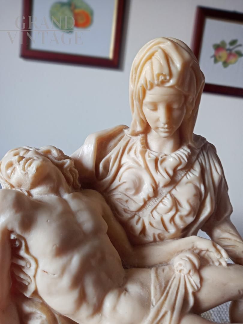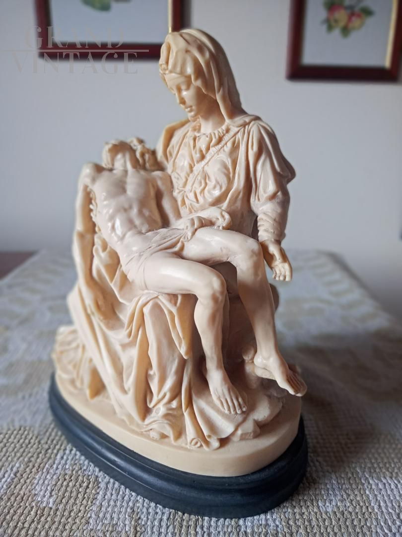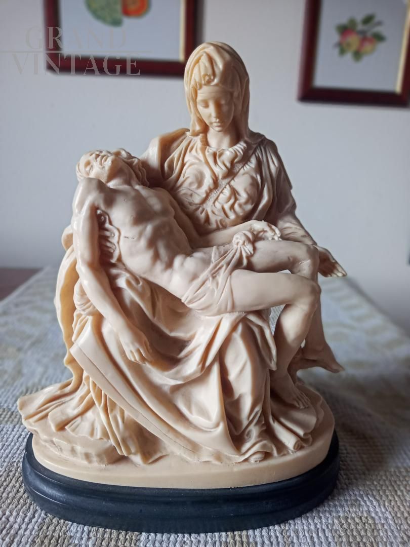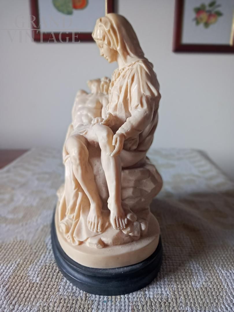 Bellissima statua raffigurante La Pietà databile negli anni '60 realizzata e firmata sul retro dallo scultore Amilcare Santini, nato in Toscana a Cecina nel 1910 ( 1910 - 1975 ). La sua pratica riproduce sculture basate sulla sua creazione originale e su quella di altri artisti. La maggior parte delle opere sono in stile classico, religioso e mitologico. Il materiale è un composto di marmo, polvere di avorio, alabastro e resina che viene colato in uno stampo e poi rifinito a mano. Perfetto per arredare con classe un salotto o uno studio. Scultura in perfette condizioni originali senza crepe o scheggiature.