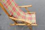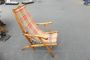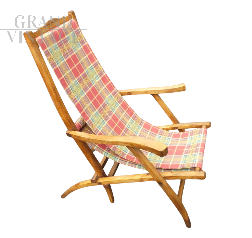 Deliziosa e particolare sedia sdraio Piemontese della fine del 1800 in legno di visciolo (una varietà di ciliegio). Il tessuto è stato rimesso nuovo.
