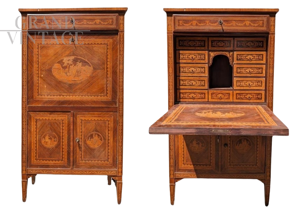 Secretaire antico di fine '700 con intarsi Maggiolini