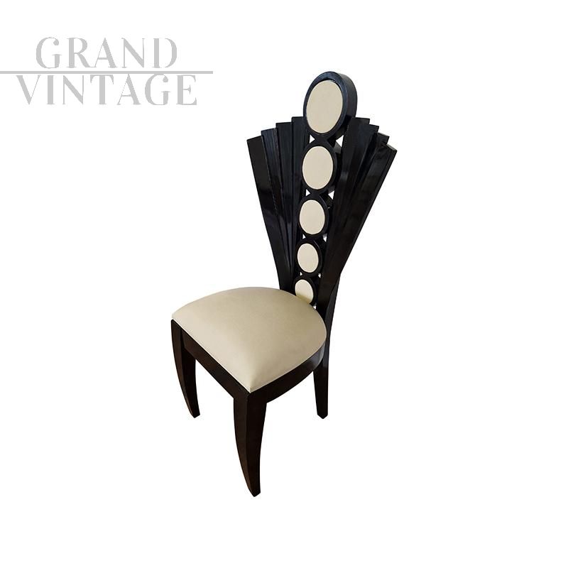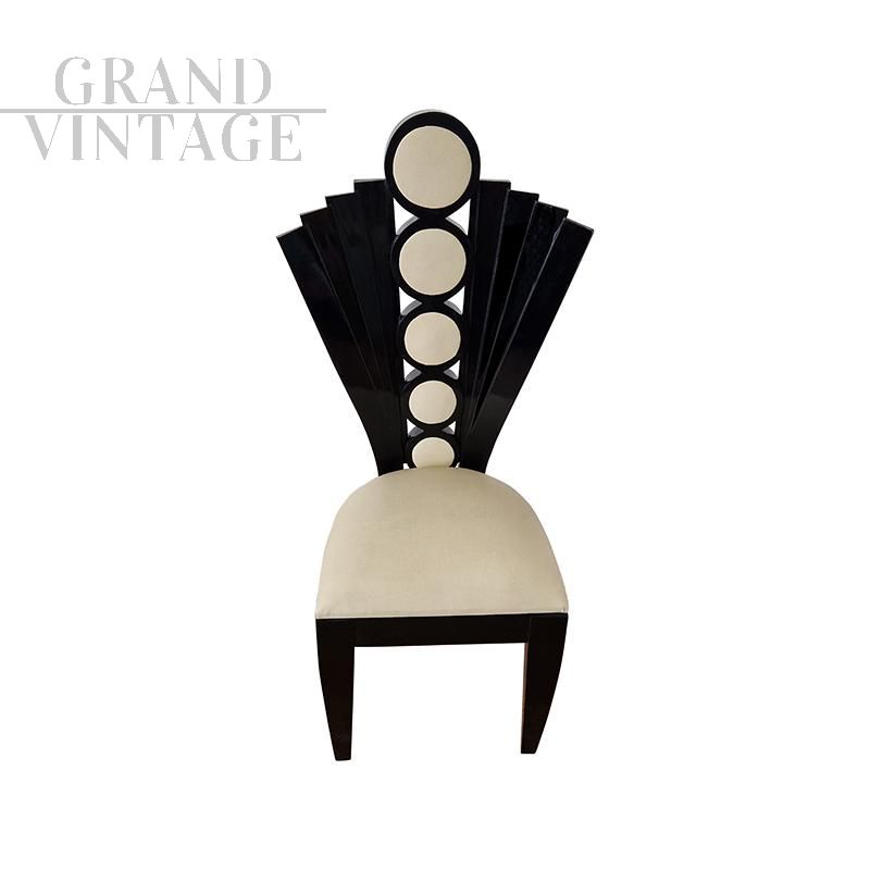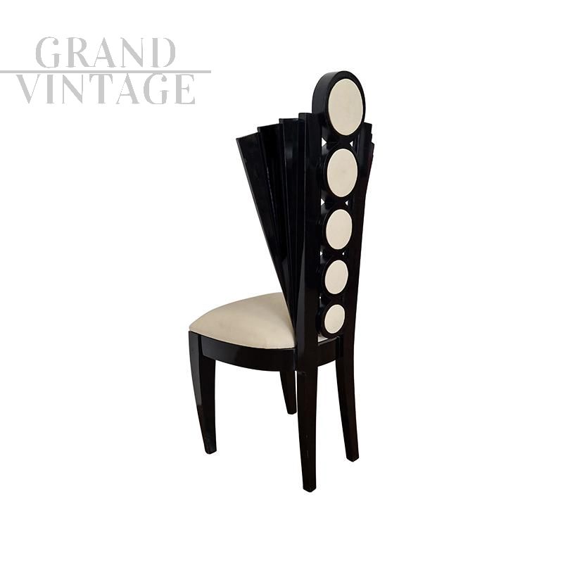 Sedia design nera in pelle bianca con schienale a ventaglio