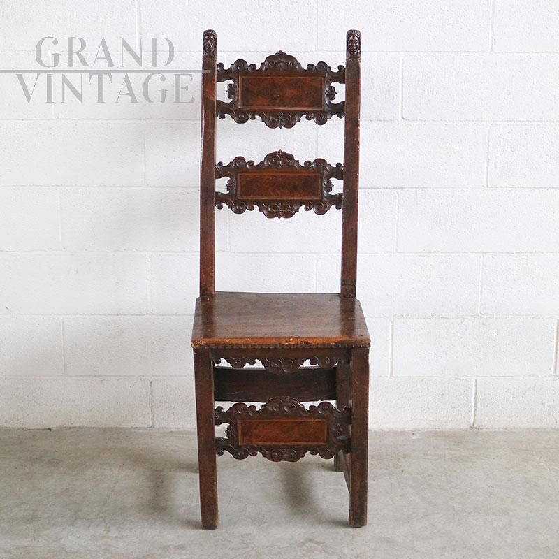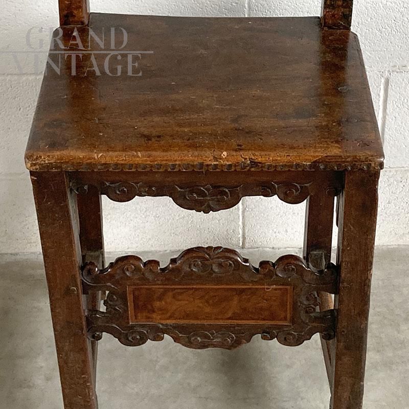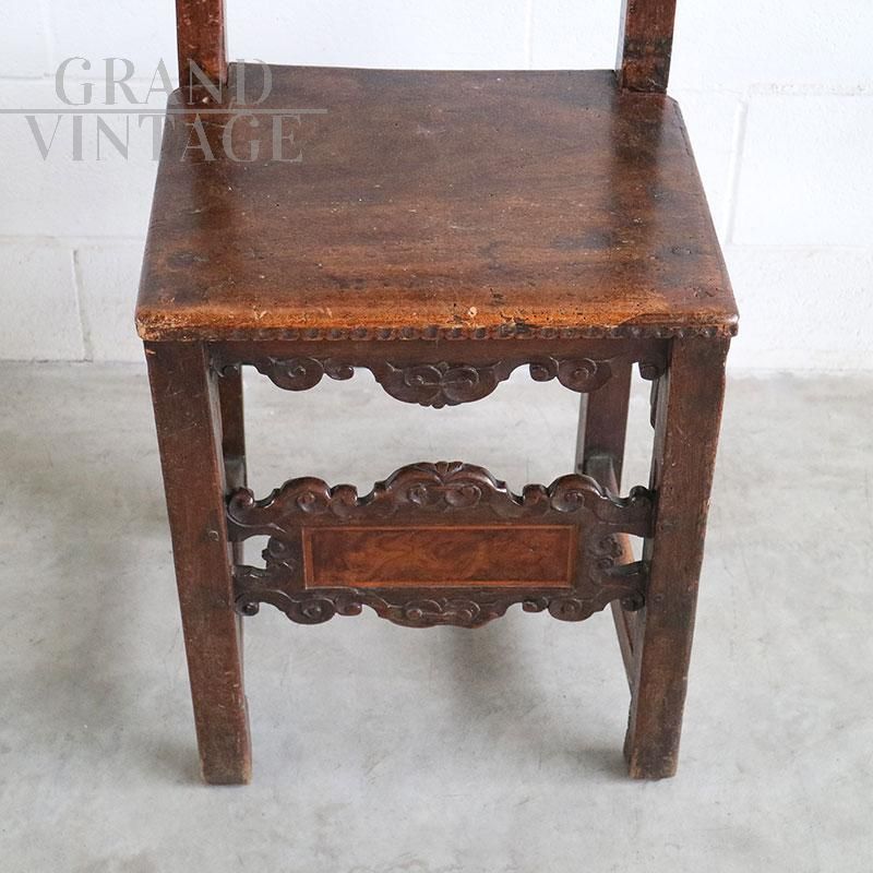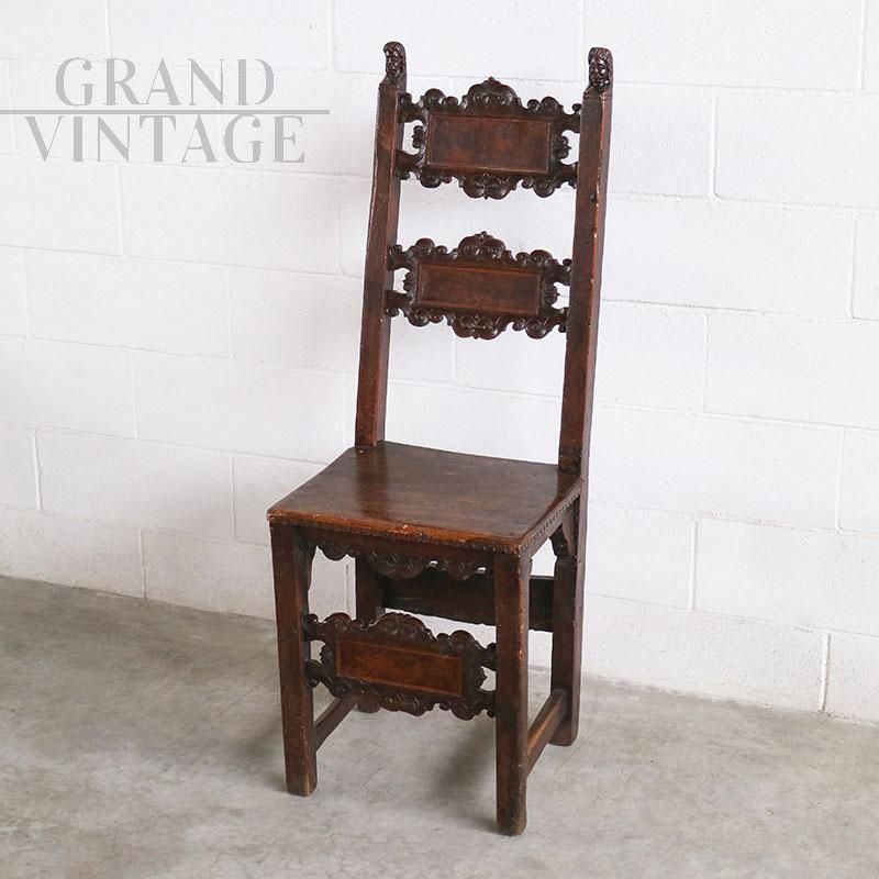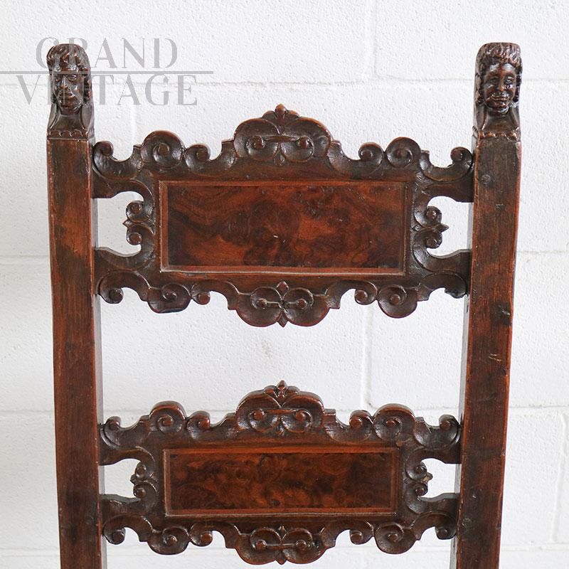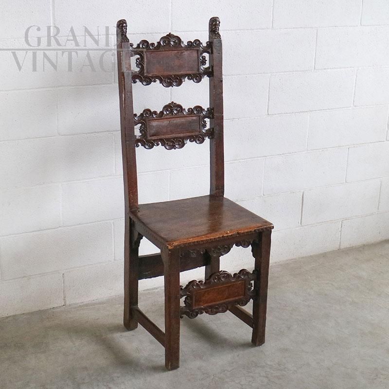 Sedia rinascimentale in noce intagliato, XVII secolo