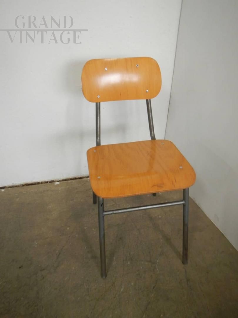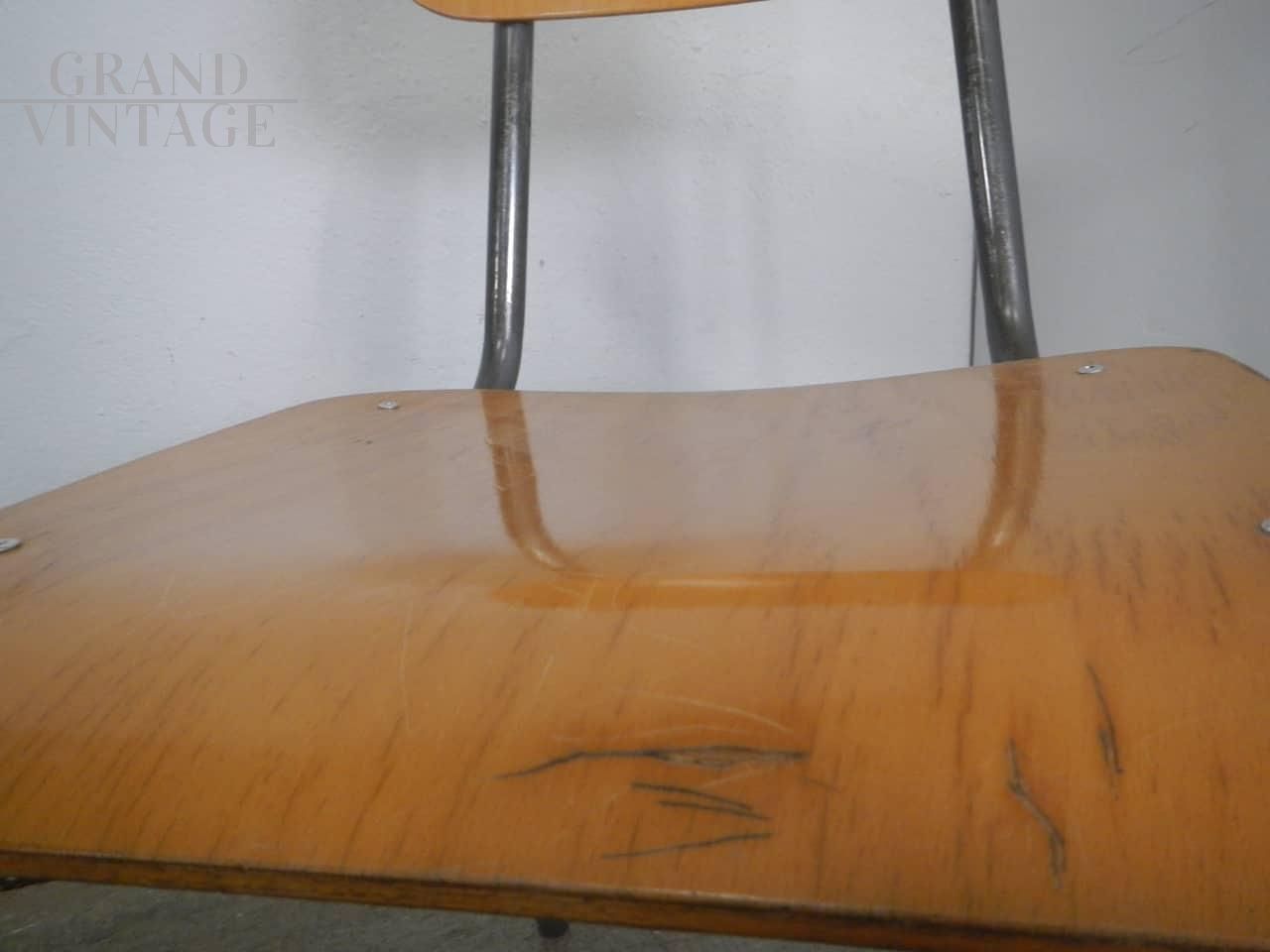 Sedia scolastica anni '50 con struttura in tubo metallico.