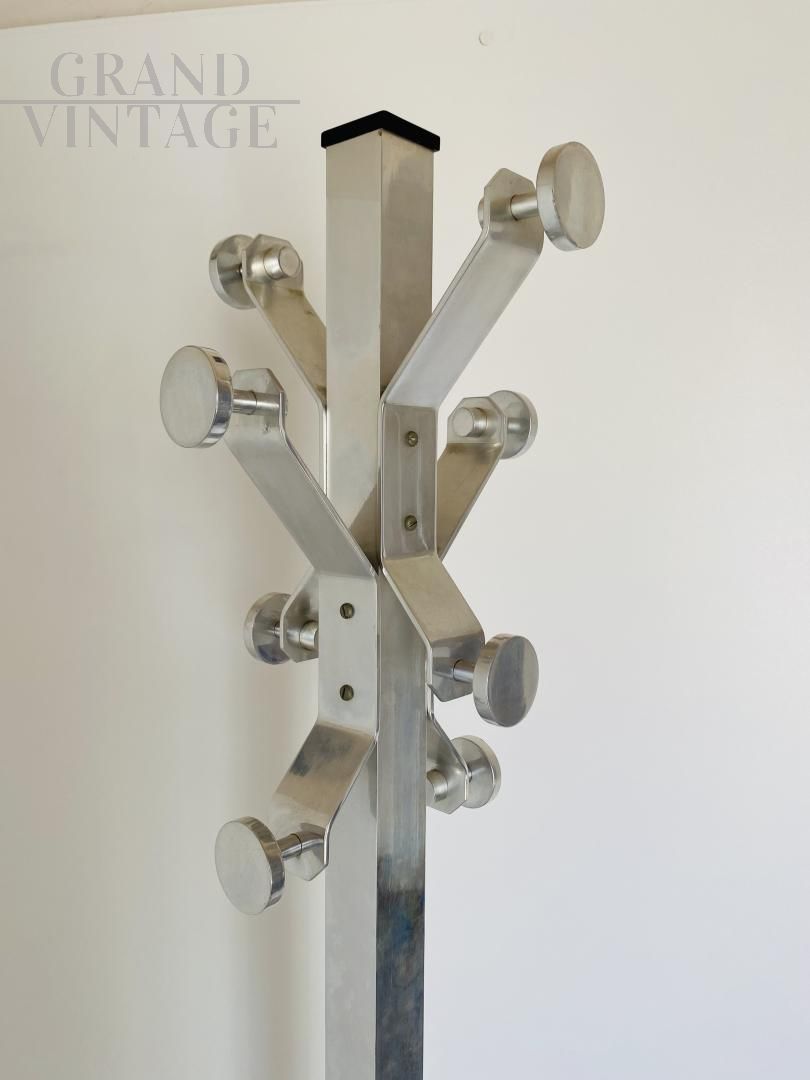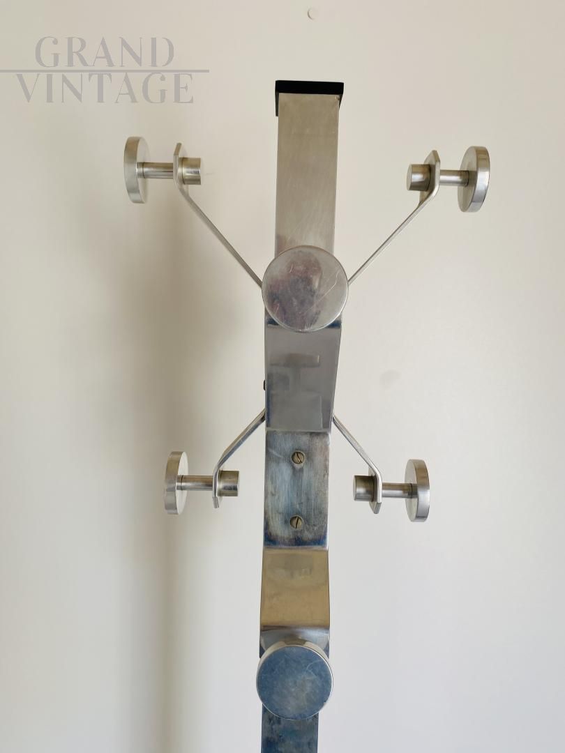 Set con appendiabiti e portaombrelli vintage in acciaio, anni '70