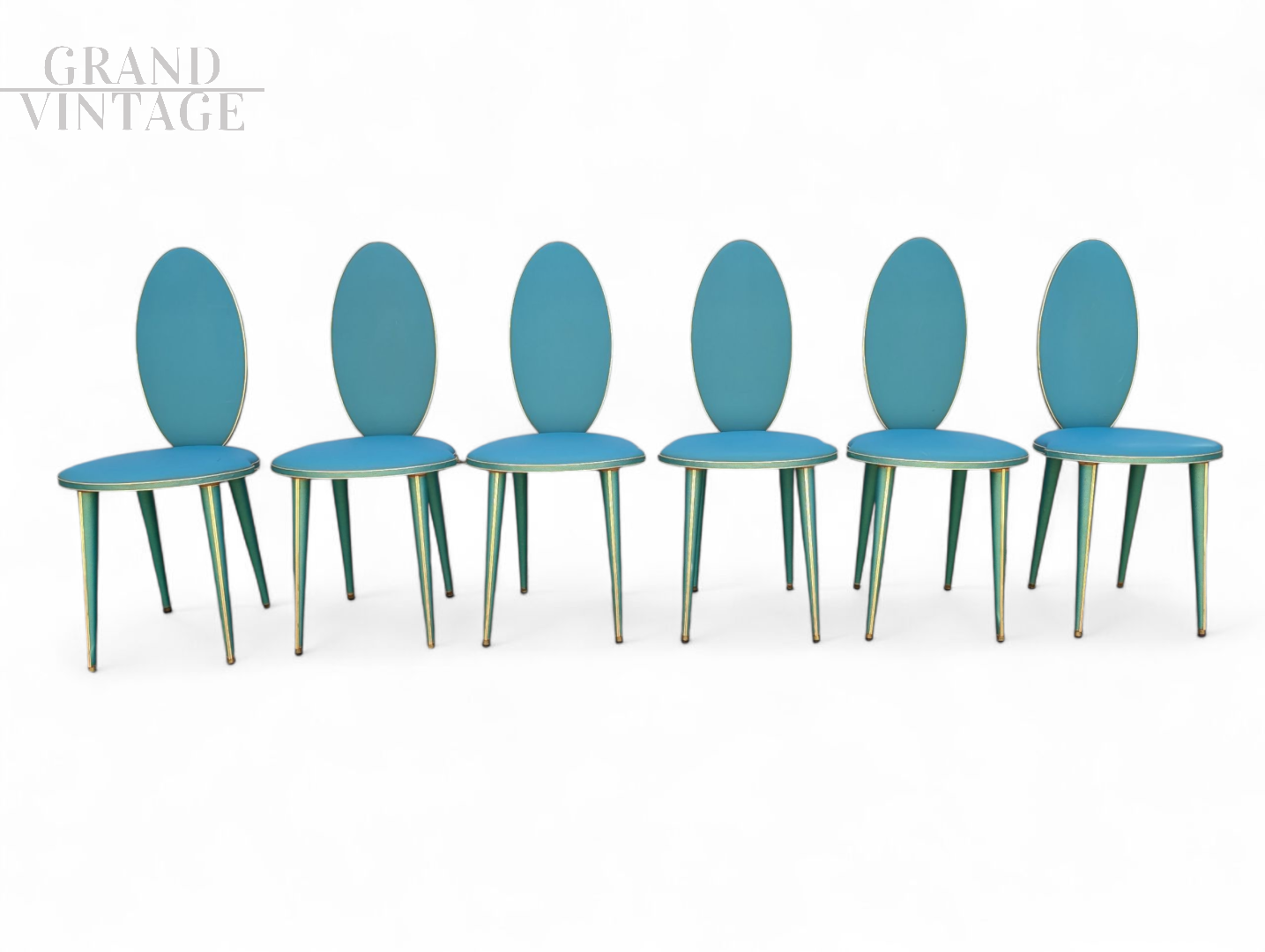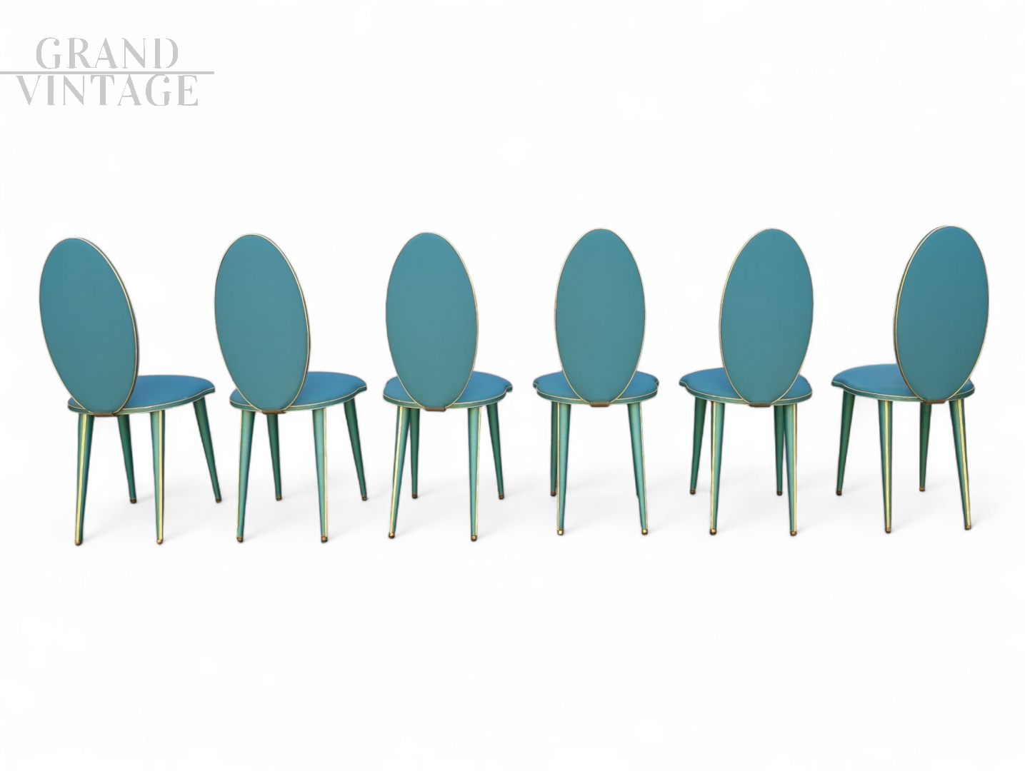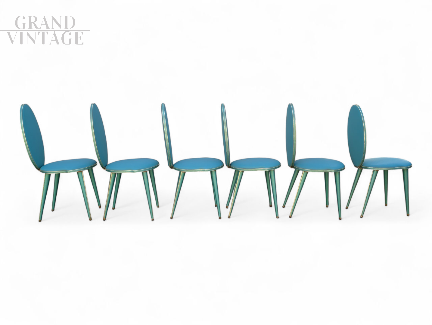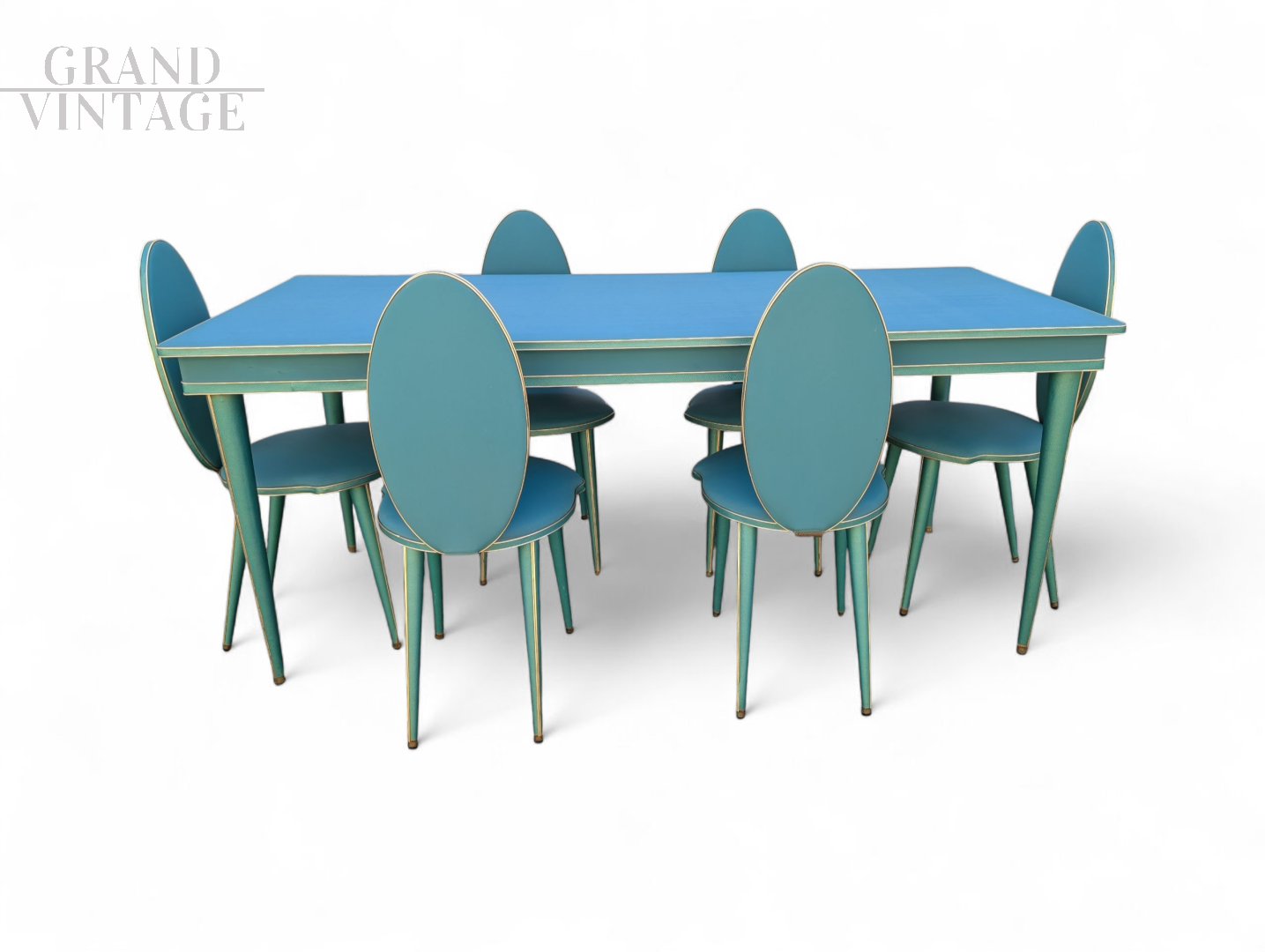 Set da pranzo verde acqua con dettagli dorati in stile vintage anni '50