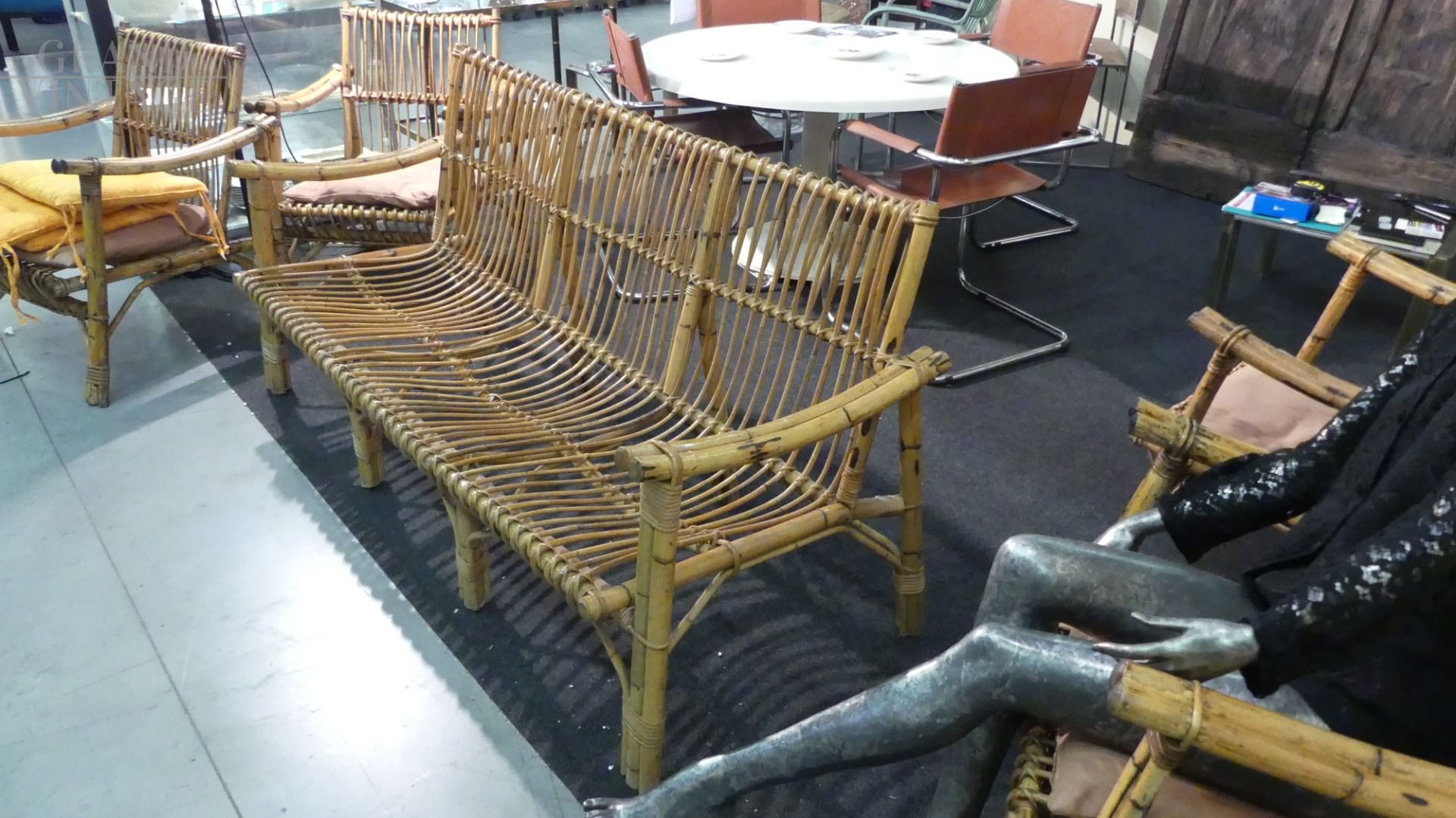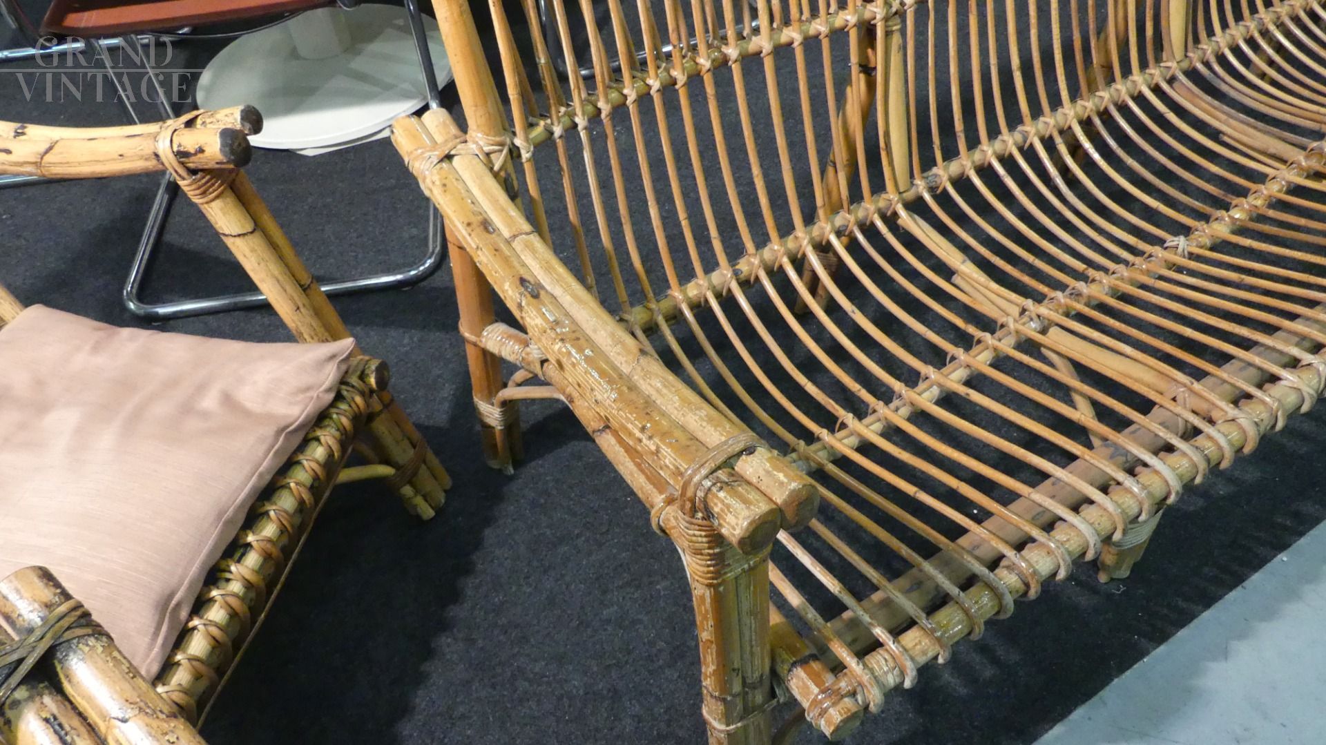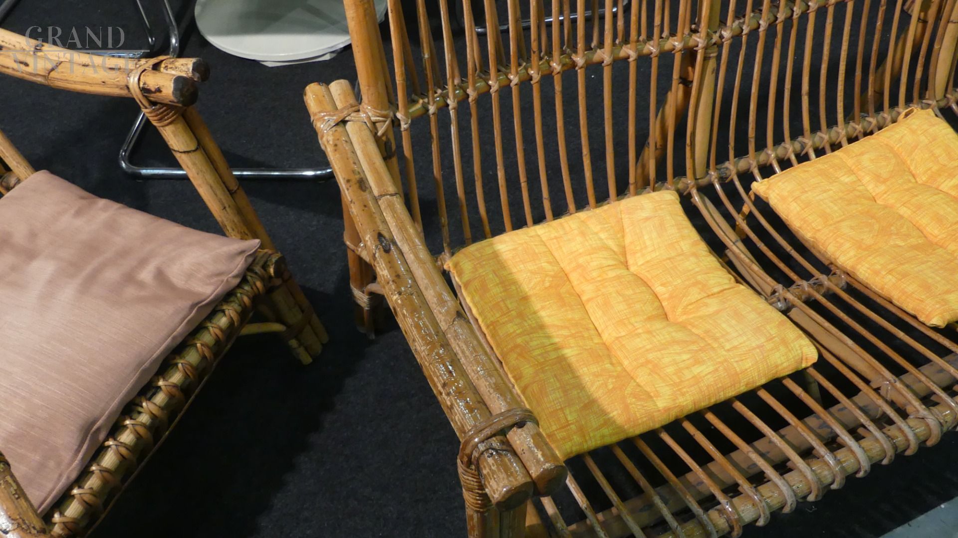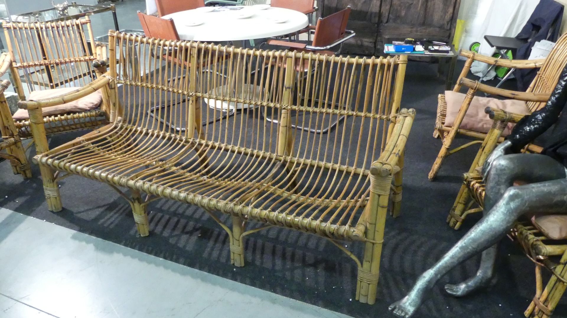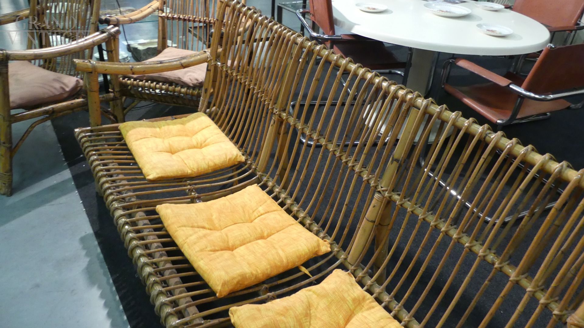 Set da salotto vintage in bamboo con divano, 4 poltrone e tavolino