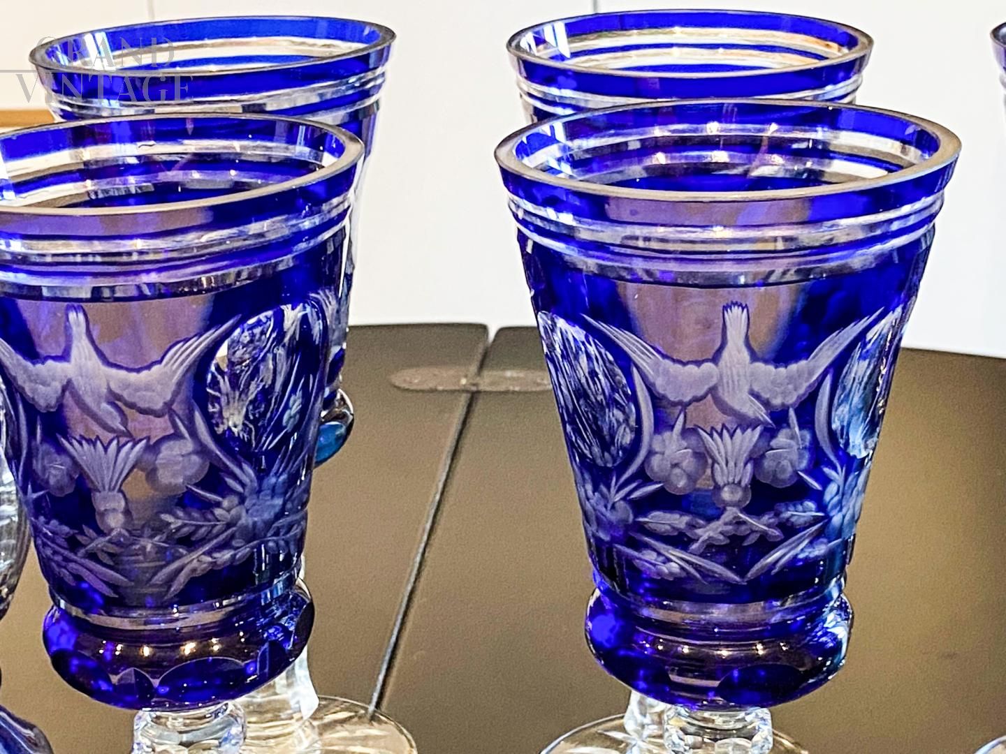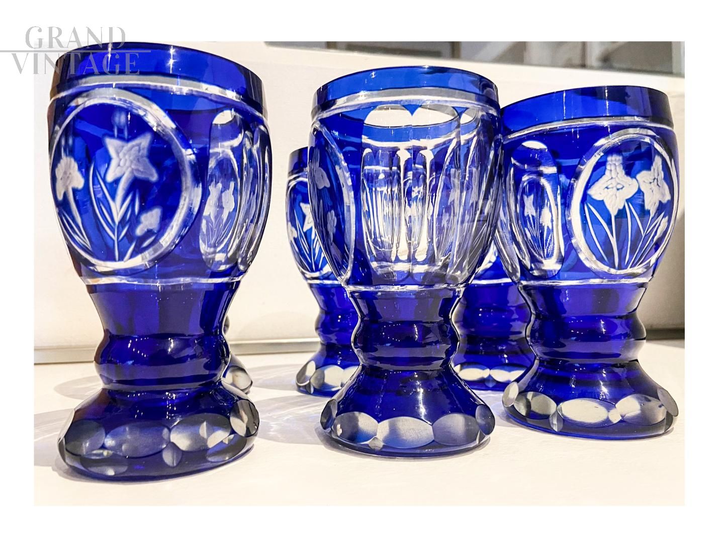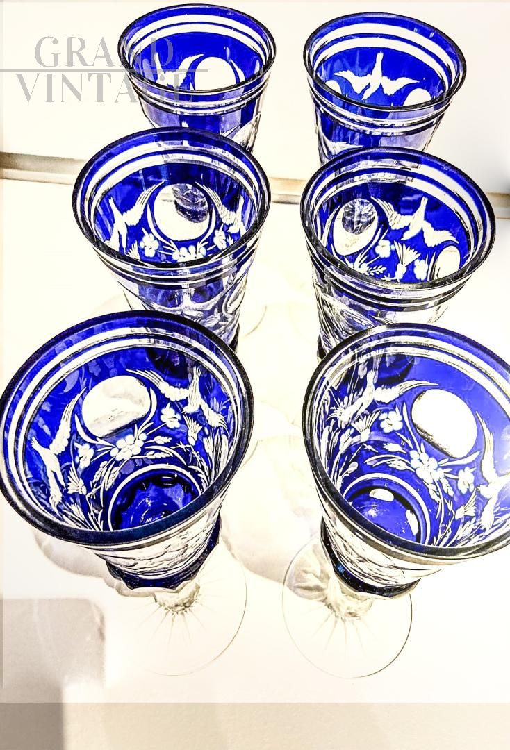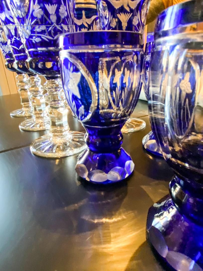 Set di 12 bicchieri e calici in vetro di Murano blu finemente decorato, Italia anni '70