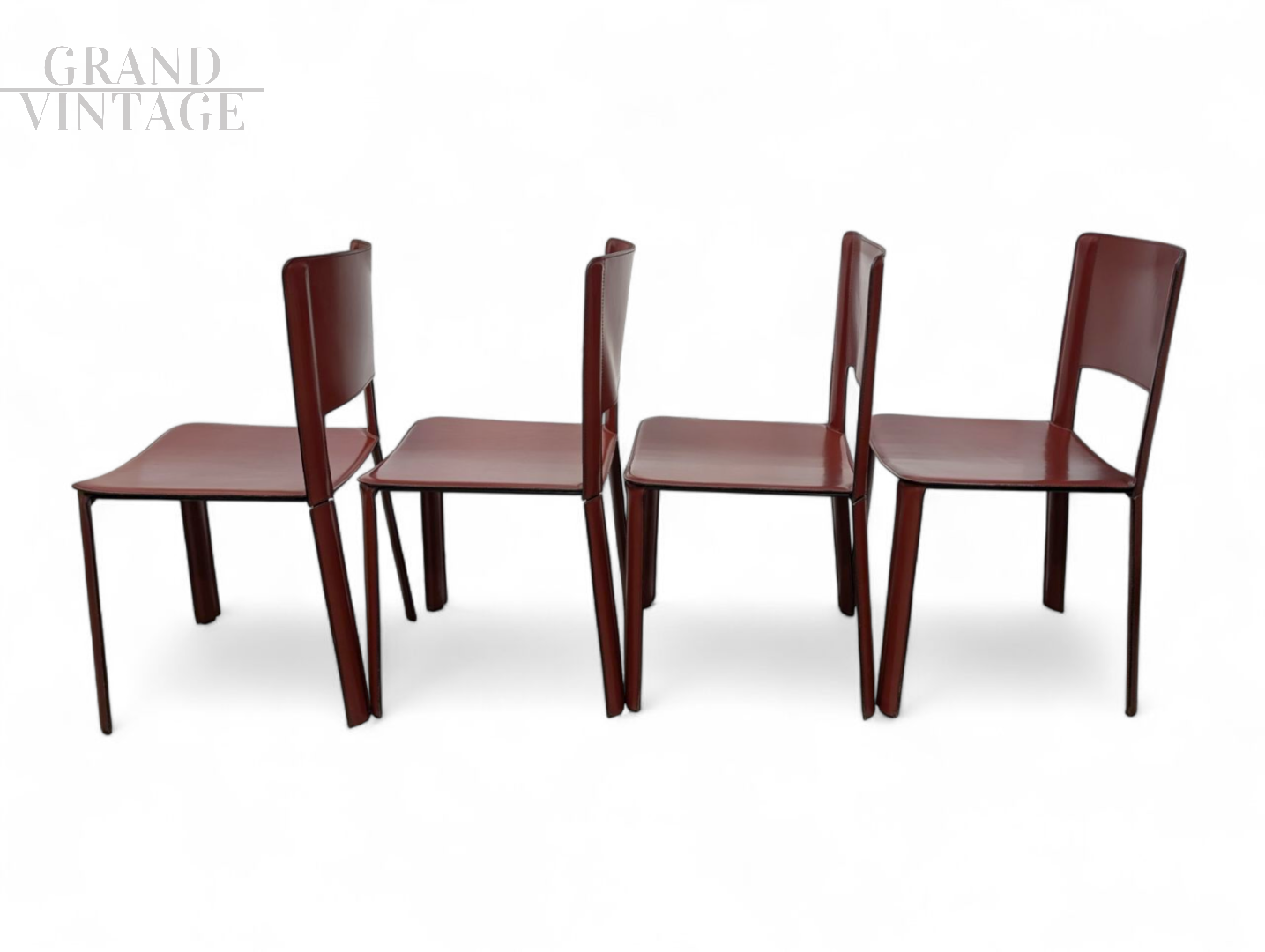 Set di 4 sedie Cidue in pelle bordeaux, Italia 1970