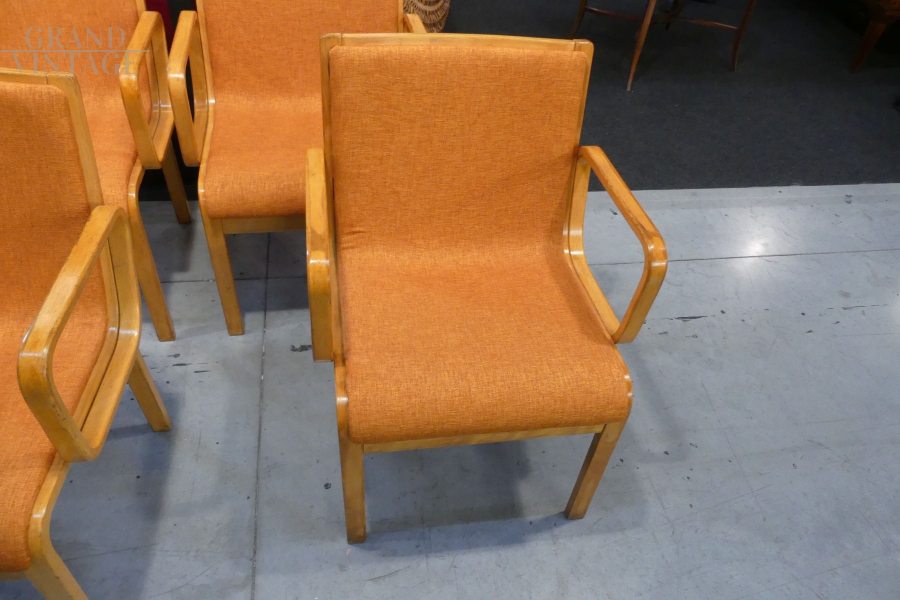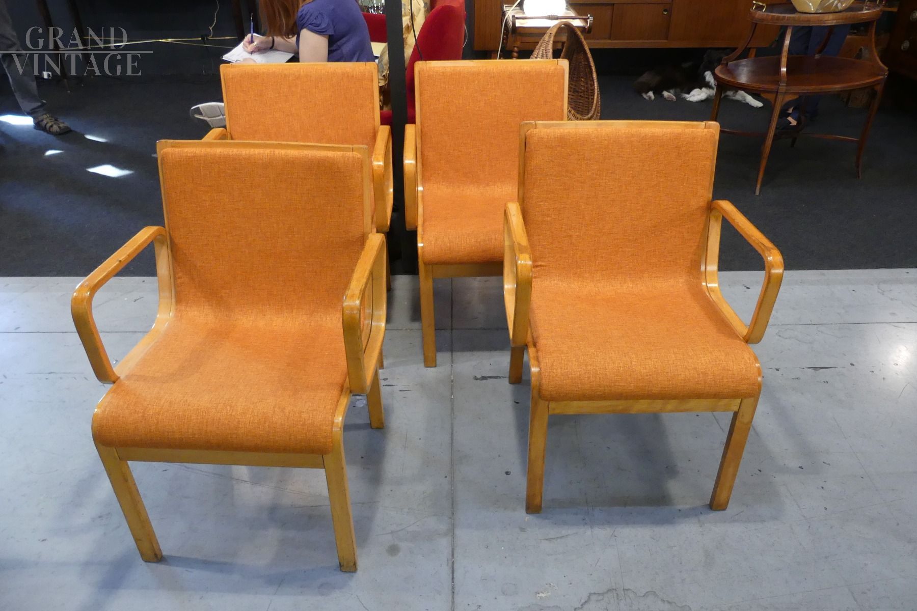 Set di 4 sedie Joc in tessuto arancione, design svedese anni '60