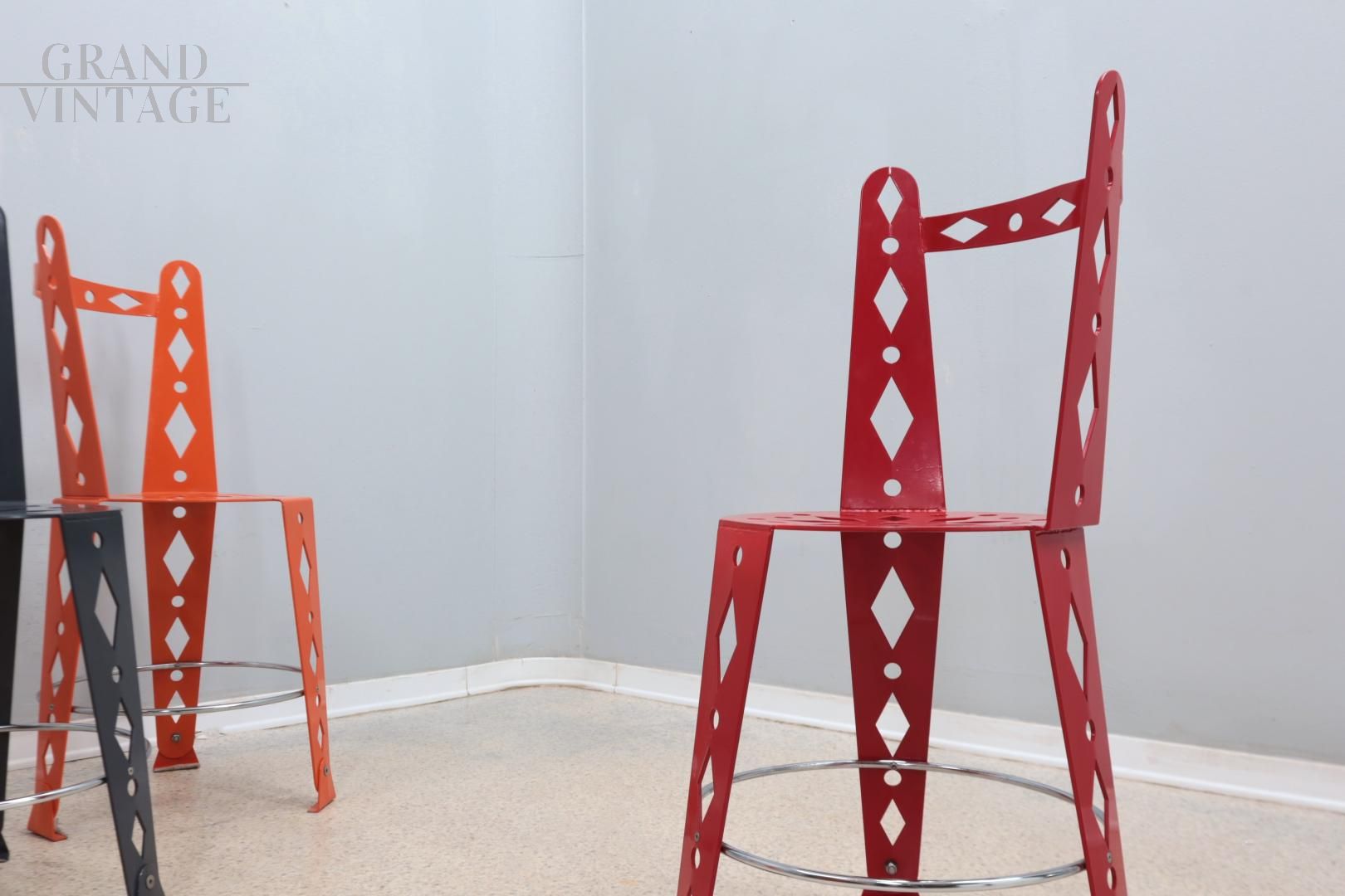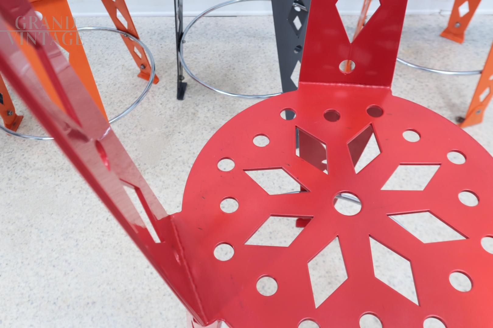 Set di 6 sedie Artifort postmoderne in metallo traforato e colorato