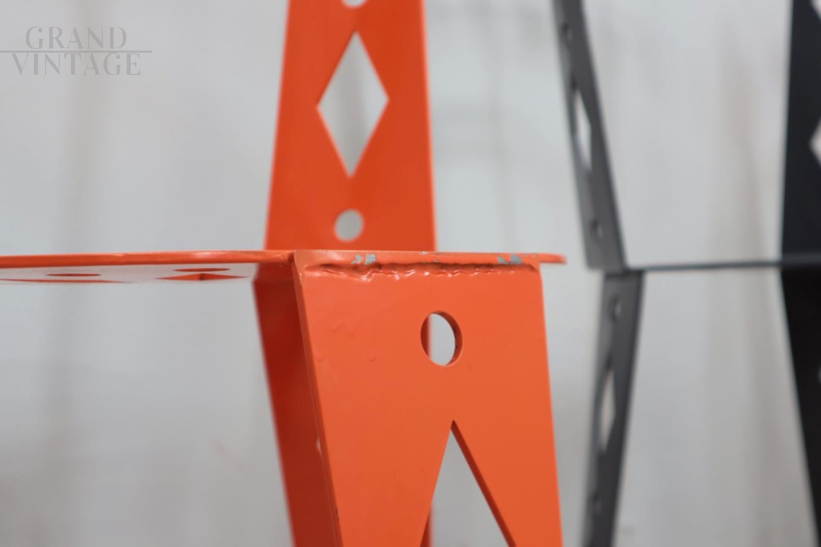 Set di 6 sedie dal design postmoderno di alta qualità, attribuite ad Artifort e prodotte negli anni 2000. Le sedie sono realizzate in metallo laccato in tre colori, rosso arancione e nero, con bellissime decorazioni ottenute tramite taglio laser. Le sedie sono in ottime condizioni, presentano i normali segni del tempo e dell'uso. Sono robuste, pesanti e con un aspetto sorprendente. Questo set di sedie decorative da collezione è pronto per arredare il vostro studio o negozio di casa.