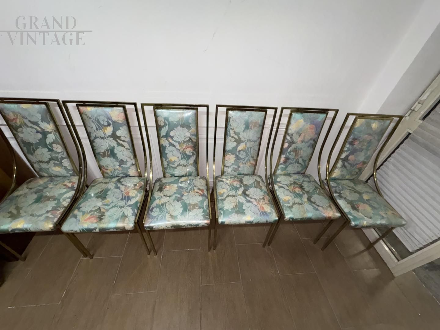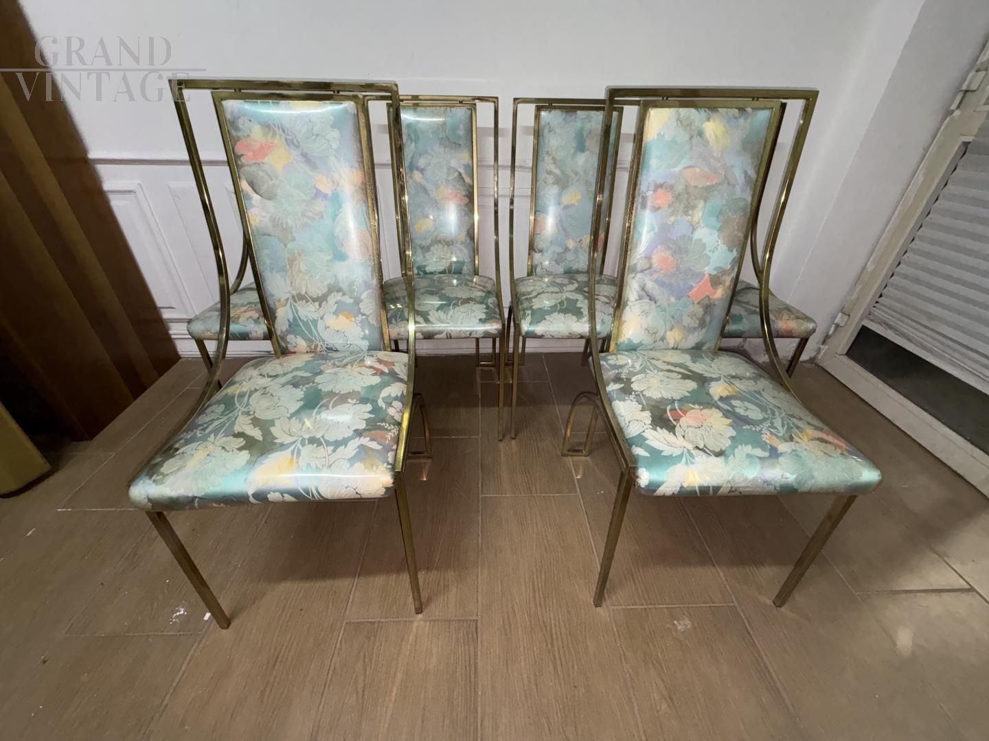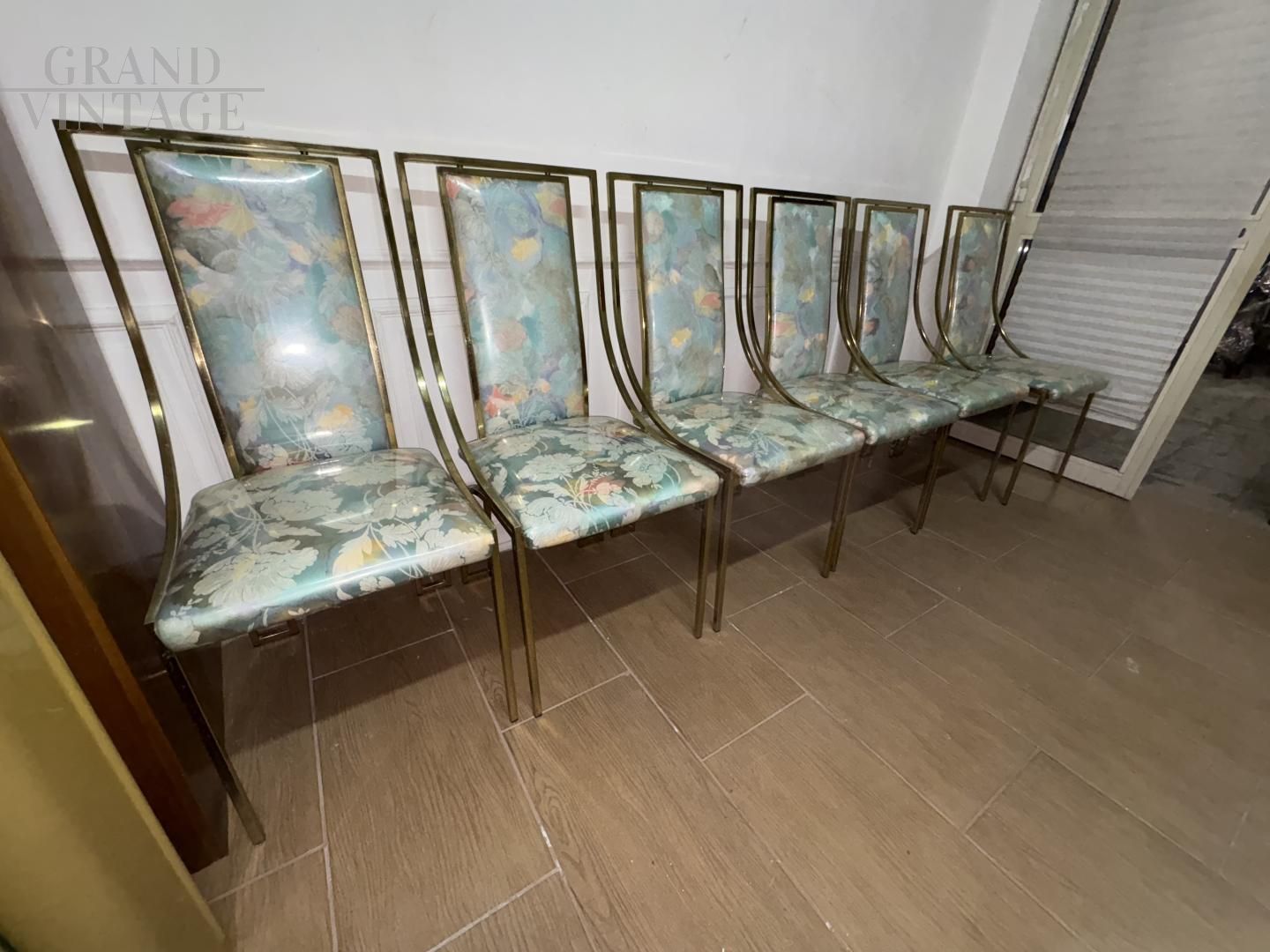 Set di 6 sedie in stile Romeo Rega in ottone e tessuto floreale
