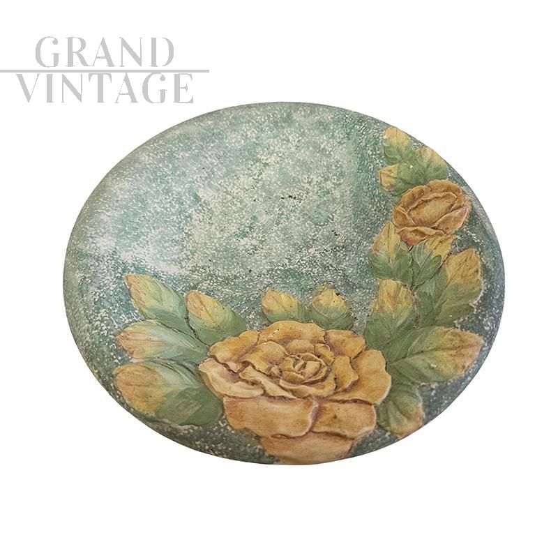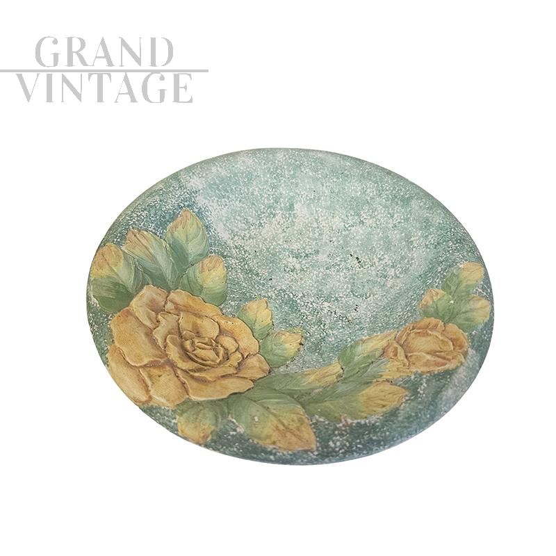 Set di quattro piatti vintage in ceramica dipinta con rose gialle
