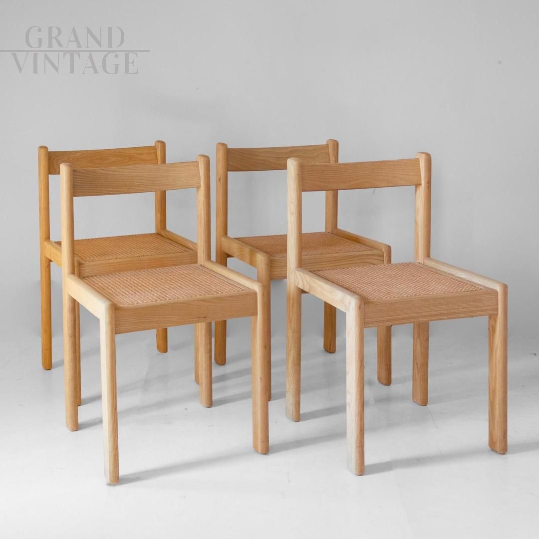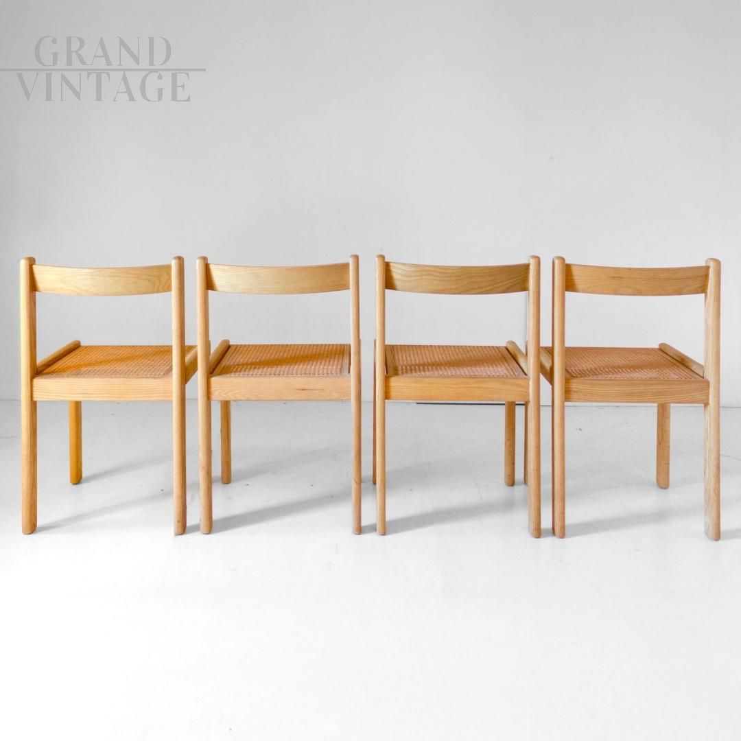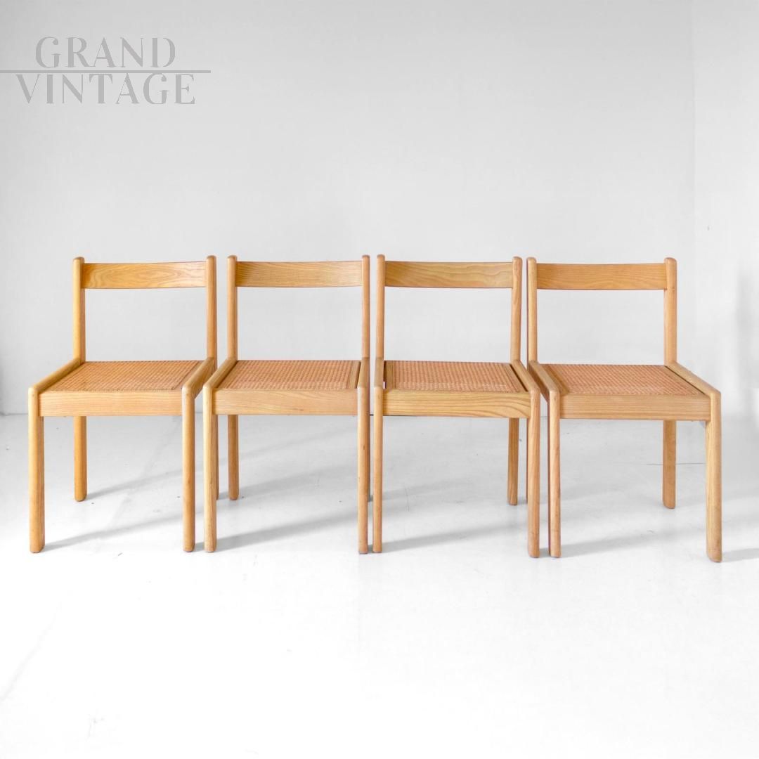 Set di quattro sedie vintage Italiane in rovere e paglia di Vienna