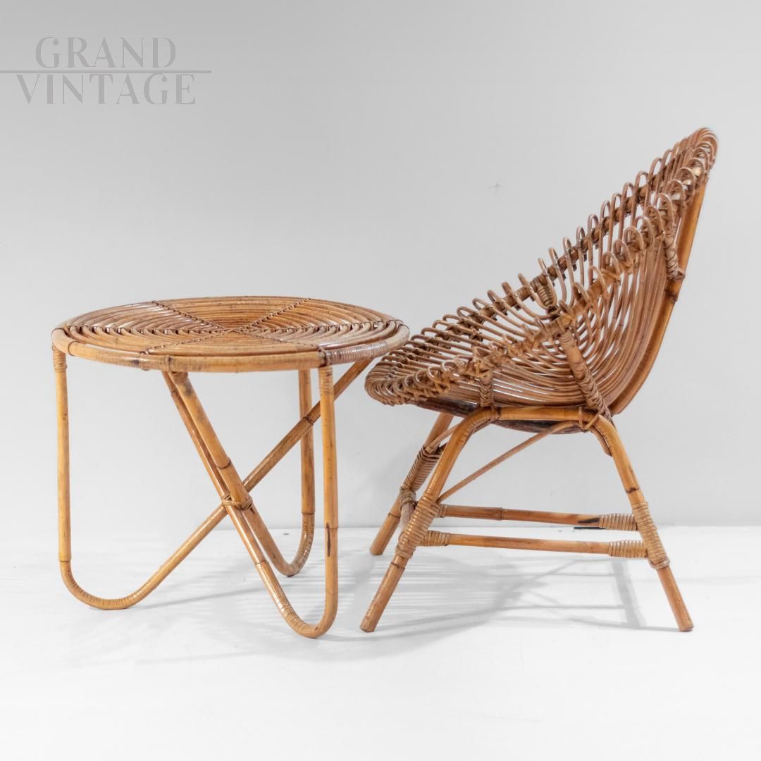 Set in bambù con poltrona e tavolino, Italia anni '60