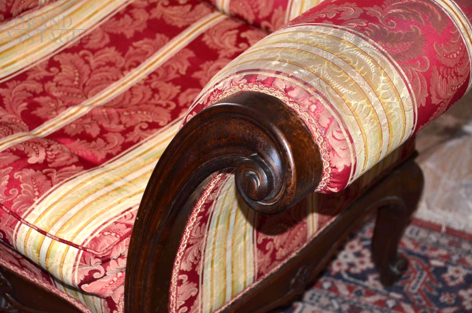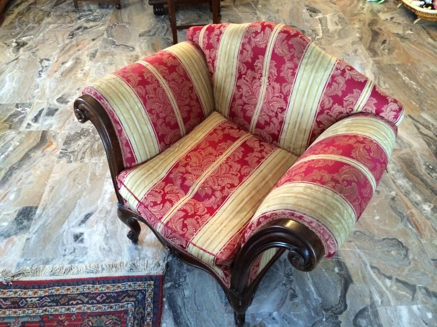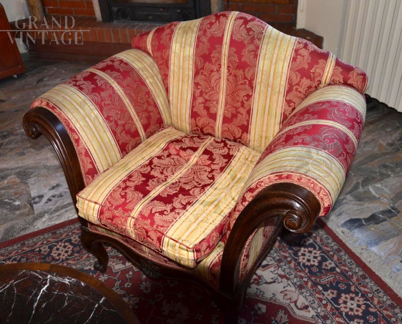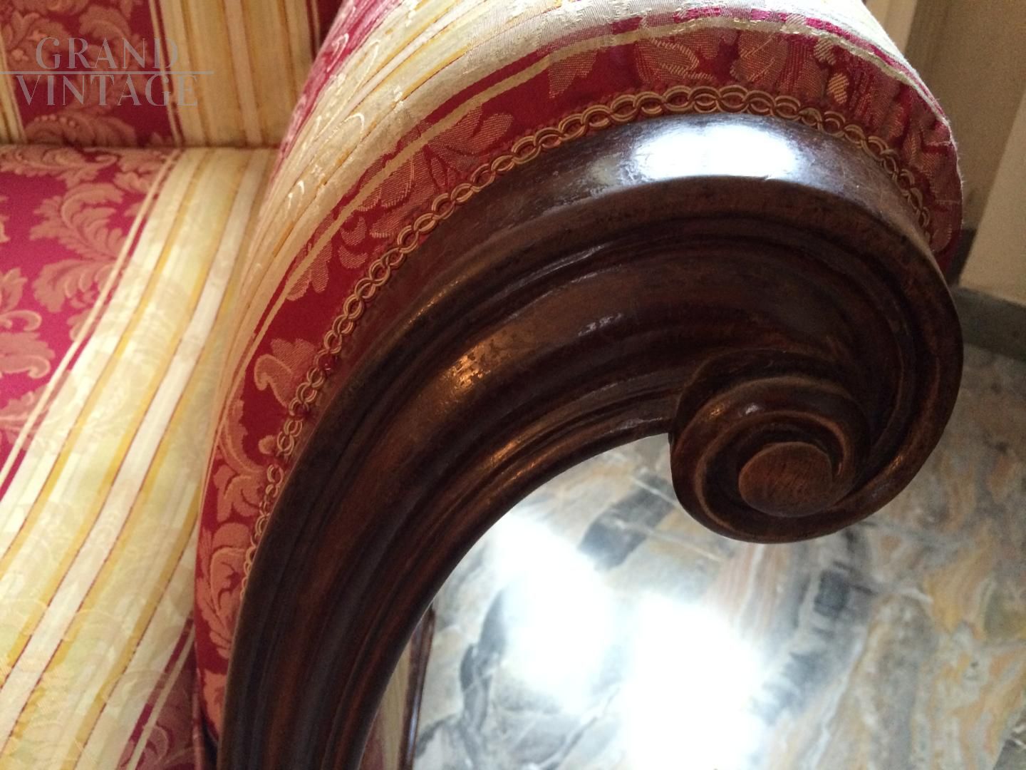 Set salotto di fine '700 composto da un divano e due poltrone, in buone condizioni, fatto restaurare quanche anno fa. Presenta solo un piccolo difetto ad un bracciolo, visibile in foto.