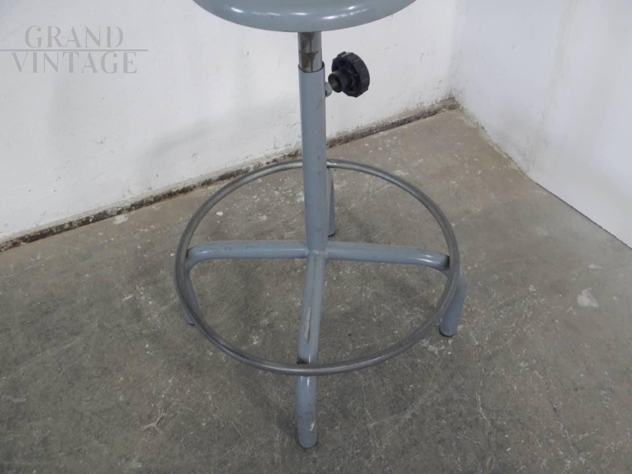 Sgabello industriale regolabile con poggiapiedi, 1970 - A
