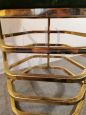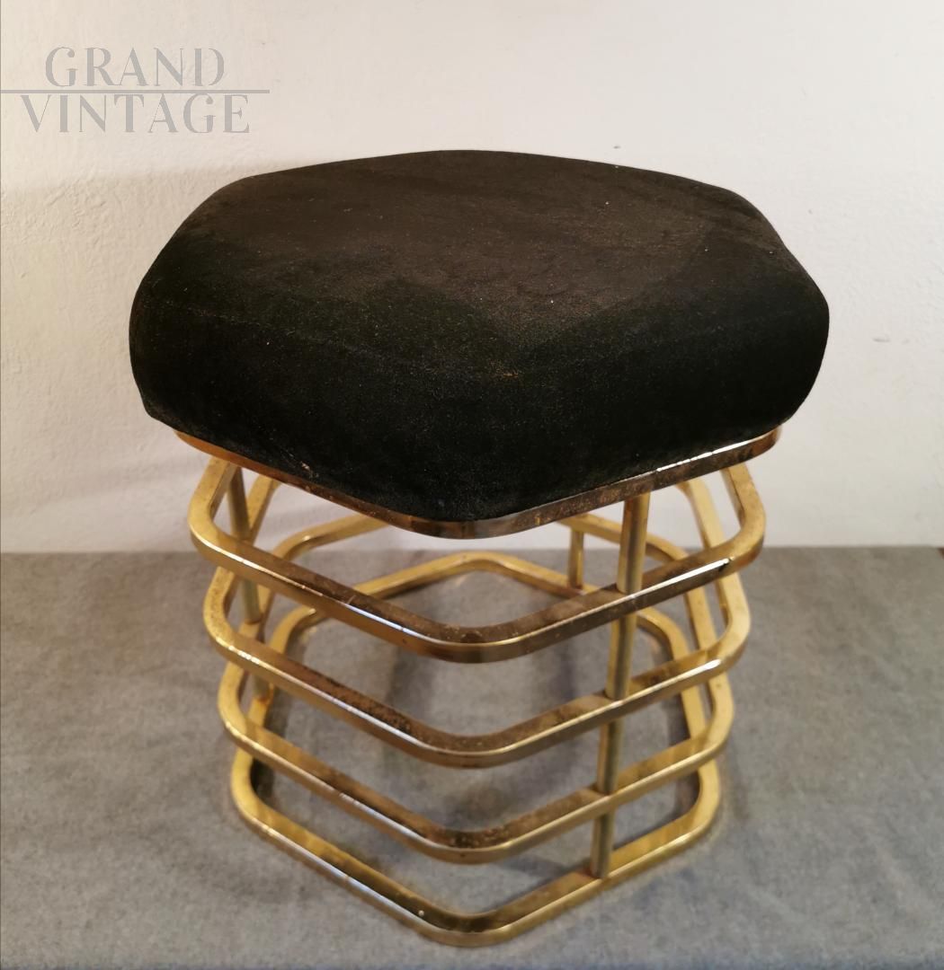 Elegantissimo sgabello vintage modernariato anni '50 con struttura a spirale esagonale in ottone e seduta in velluto nero.