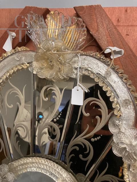 Specchiera anni '50 con cornice in vetro artistico dorato