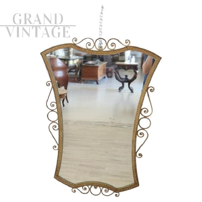 Graziosa specchiera vintage da parete anni '50 circa in metallo dorato, decorazione semplice e essenziale. Buone condizioni generali , ottimo prezzo trattabile.