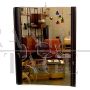 Specchio da barbiere vintage degli anni '70 con cornice in ferro cromato e con due listelli in ferro nero curvi sui lati. La schiena è in legno. Nessun danno o crepa, condizioni molto buone con alcuni naturali segni di usura e utilizzo.