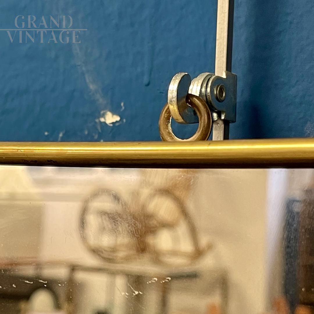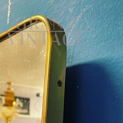 Piccolo specchio vintage da parete a forma di scudo con cornice in ottone decorata, modernariato italiano anni '50.