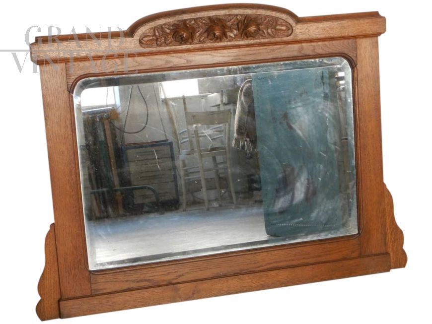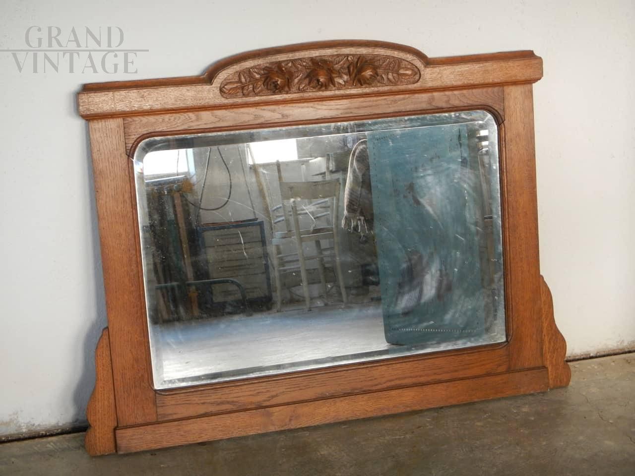 Specchio con cornice in legno di rovere e specchio molato, anni '60.