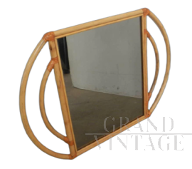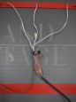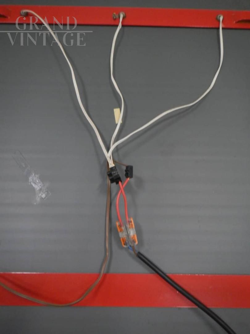Specchio da bagno vintage luminoso in metallo rosso con mensola e tre lampadine, la mensola ha una profondità di 12 cm e la parte superiore è elegantemente arrotondata. Lo specchio è perfetto anche per una camera da letto, ed è completo di ganci per appenderlo e di pulsante per accensione e spegnimento delle luci. L’impianto e le lampadine sono originali. e funzionanti ma si consiglia la revisione dell’impianto elettrico.