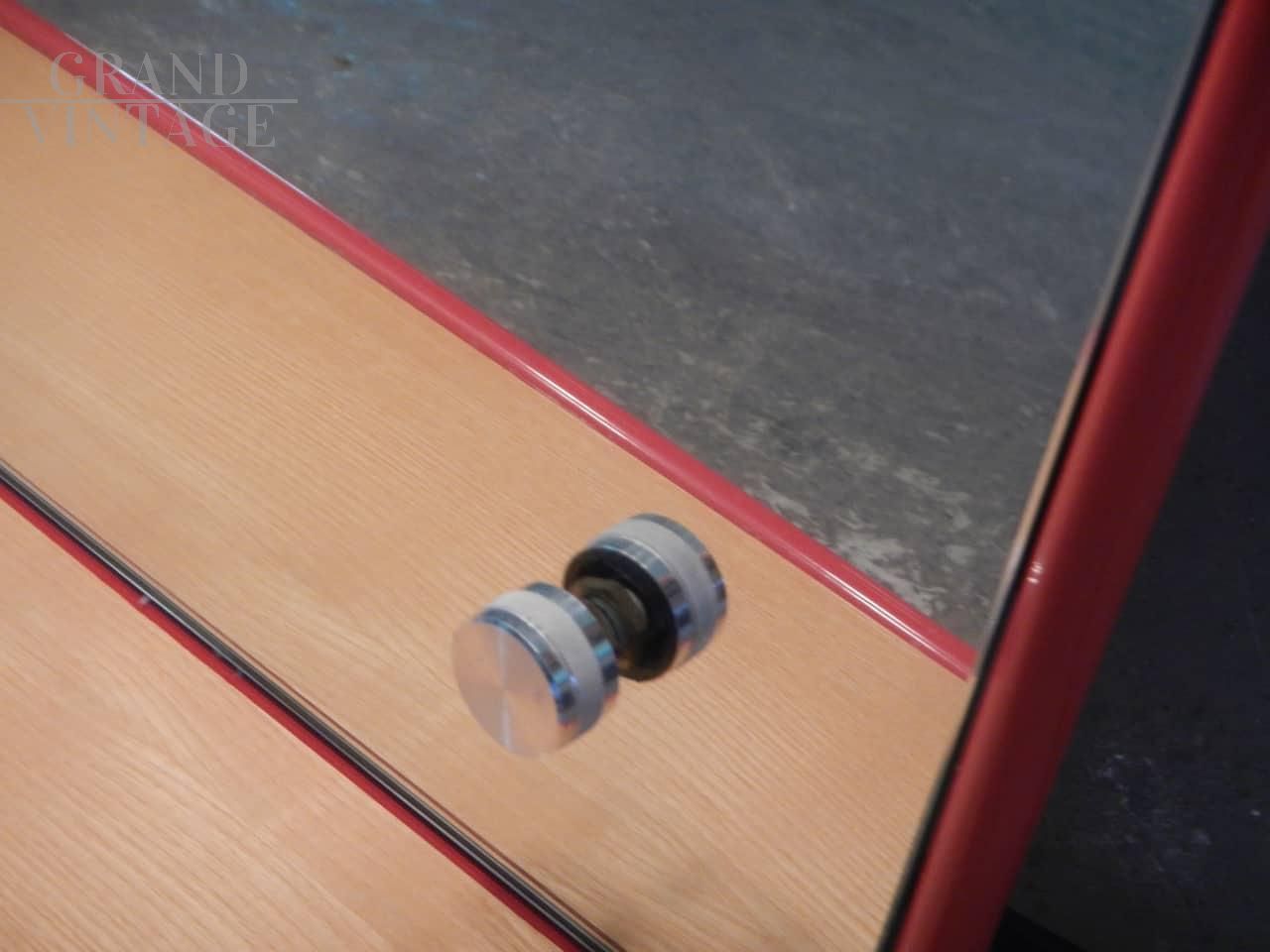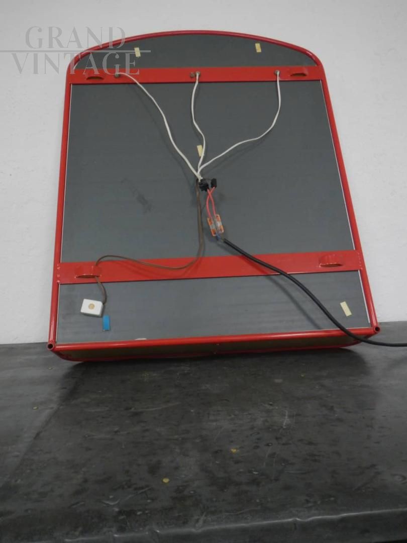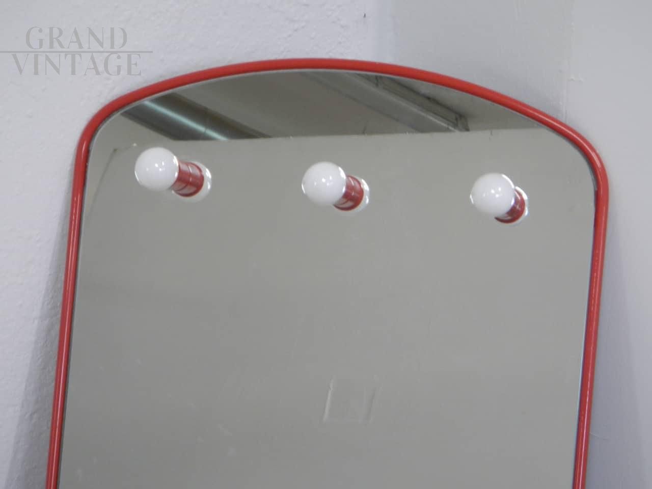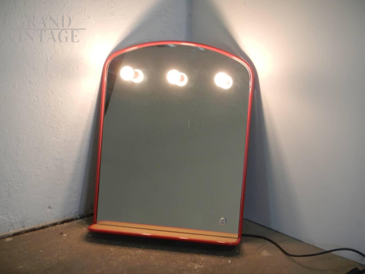 Specchio vintage illuminato con mensola in metallo rosso, anni '70