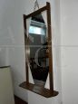Specchio vintage in legno teak con ripiano, altezza 90 cm, larghezza 50 cm, profondità 13 cm.