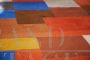 Ripubblicato con cura nel 1980 da Artcurial, in un'edizione limitata di soli 150 esemplari, questo tappeto in lana annodato a mano – qui il numero 58/150 – cattura fedelmente la visione innovativa dell'artista. Con le sue dimensioni generose (220 x 245 cm), si distingue come elemento centrale in qualsiasi interno contemporaneo, aggiungendo un tocco culturale, colorato e profondamente artistico.