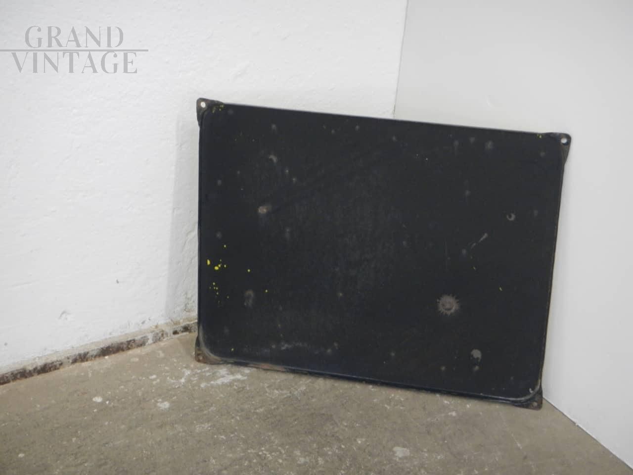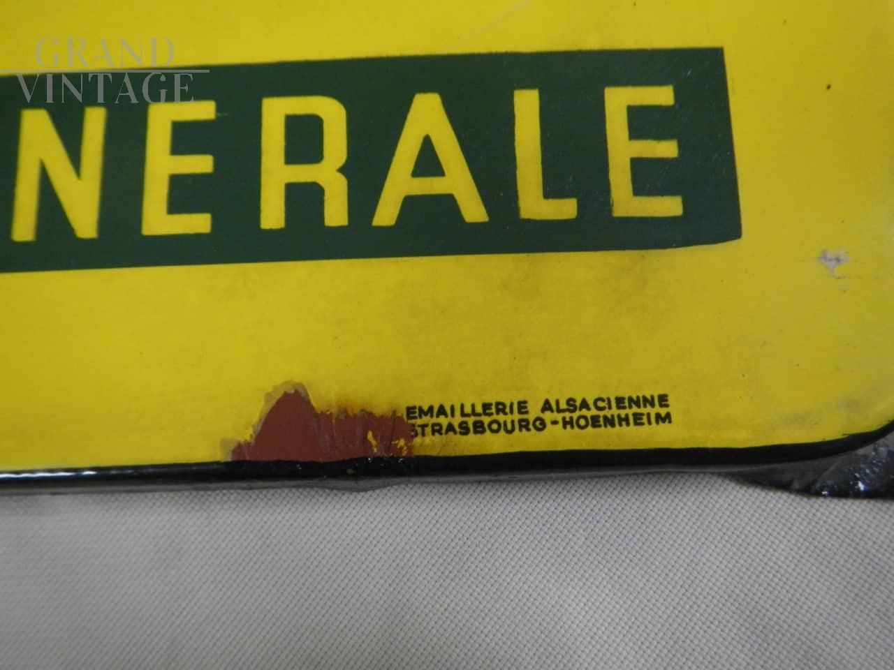 Insegna targa pubblicitaria vintage di agenzia assicurativa francese in metallo smaltato con scritta in nero L'Union Vie Assurances, 9 Place Vendôme – Paris su sfondo giallo. Completa di fori per appnderla al muro. Presenta segni d’uso consistenti, come da foto.